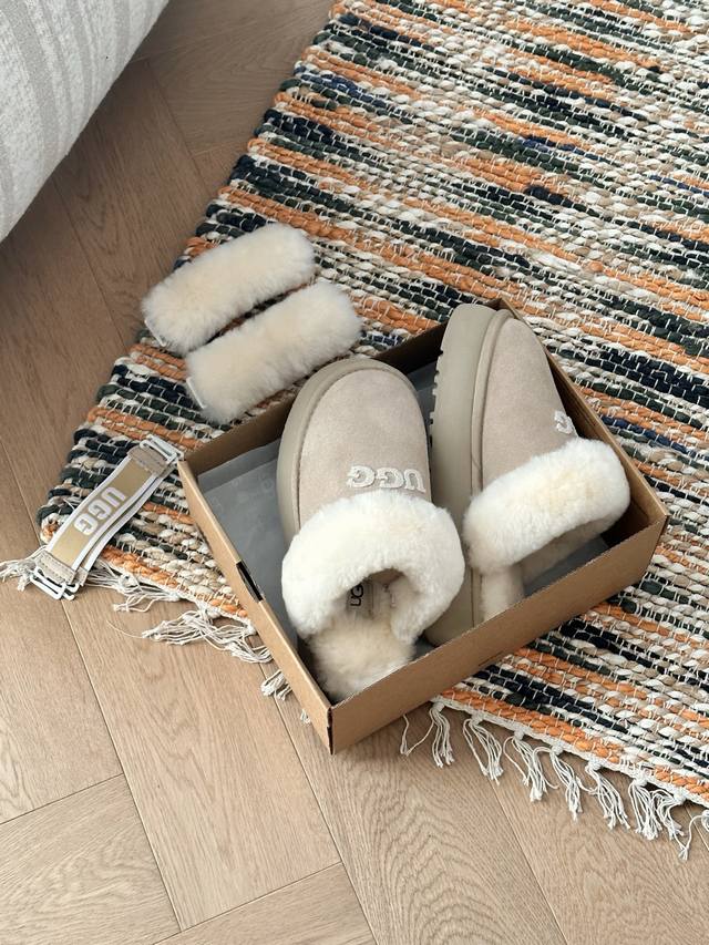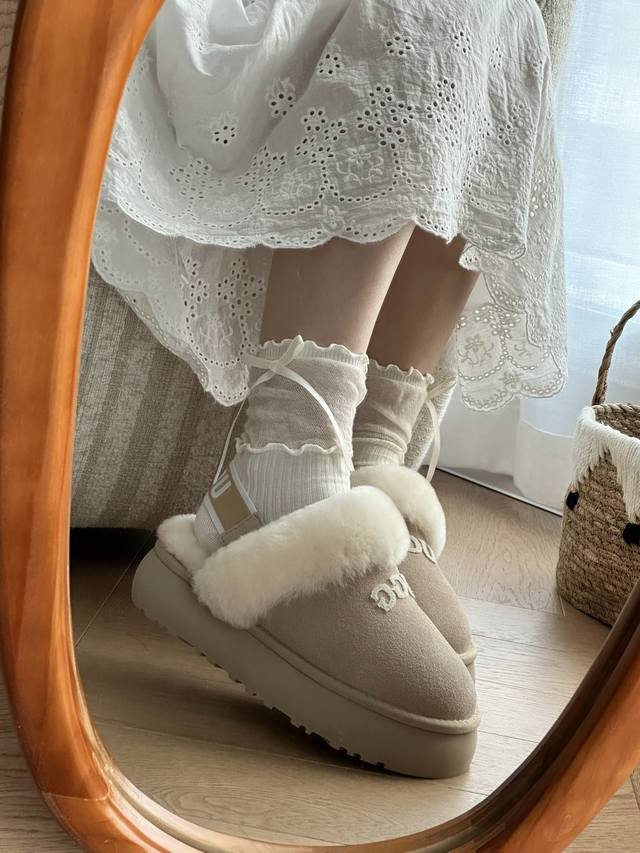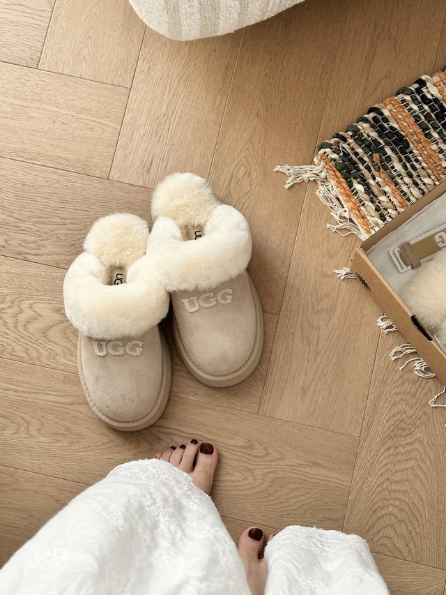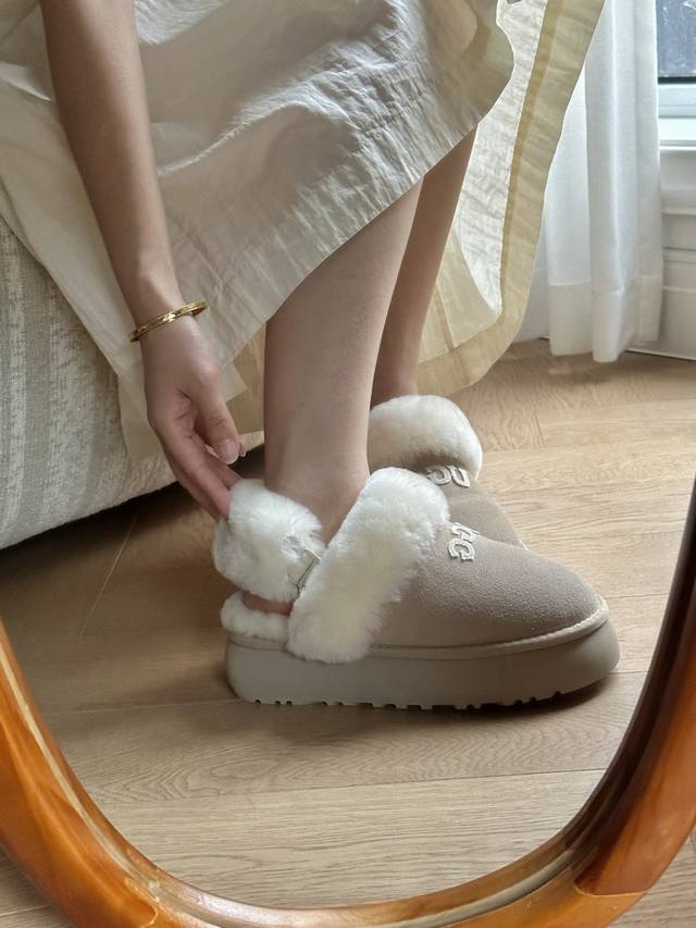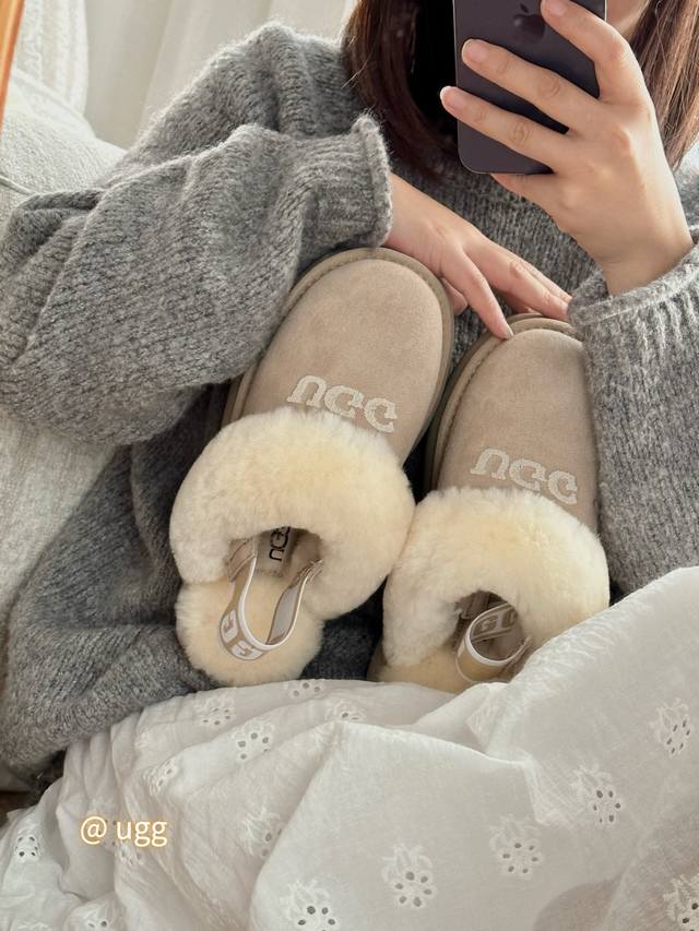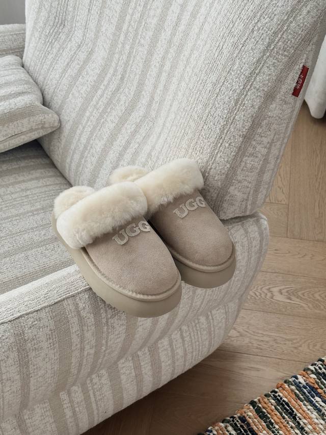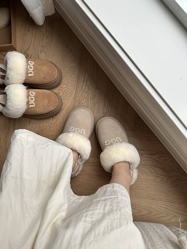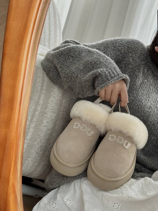 Ug.G 两穿刺绣面包拖 一鞋多穿: 羊毛毛带子 字母松紧带子 两个颜色都好看 35-40码!