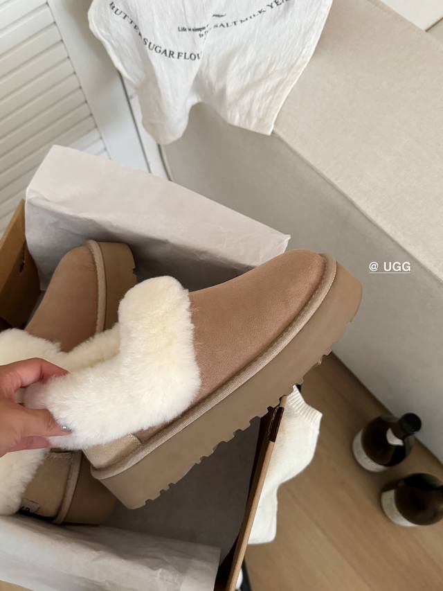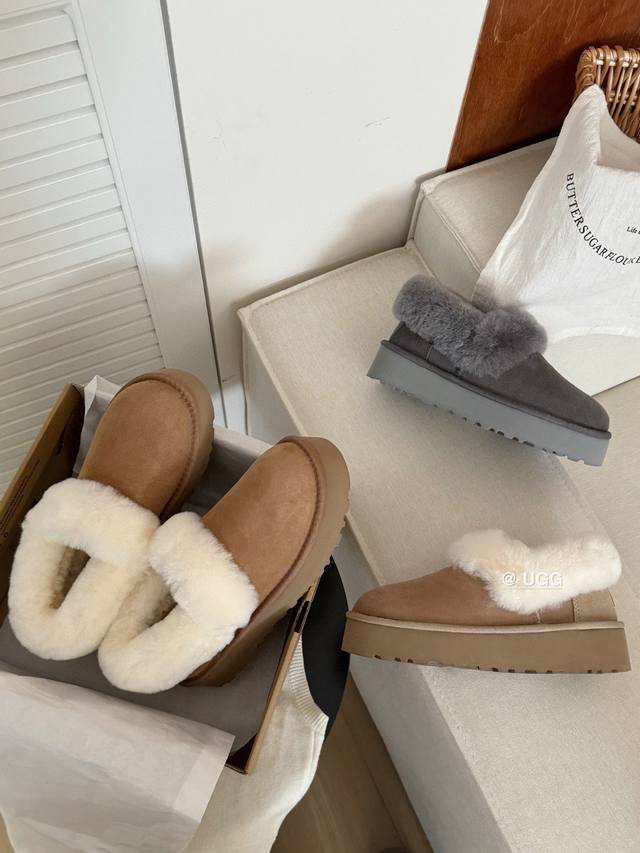 Ugg 厚底~大喜庆 经典百搭时尚 百穿不腻 皮毛一体后跟可踩 颜色:栗色、沙色 、灰色 Size:35 40