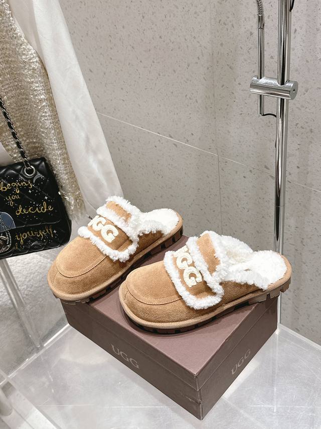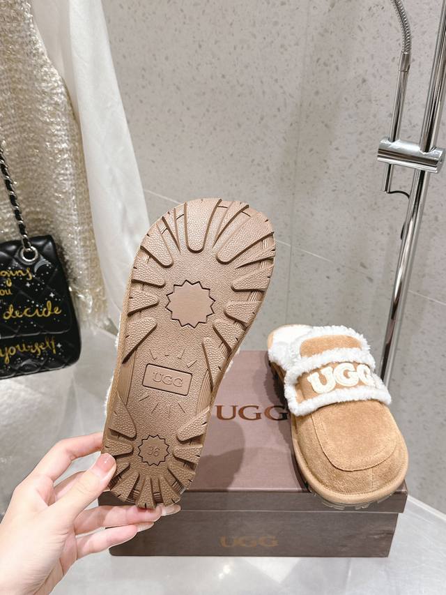 UGG 新款明星同款拼色厚底毛毛拖鞋 半拖 短靴 雪地靴 内里羊毛一体 保暖性能卓越 耐磨橡胶底 鞋子抓地力更好 拥有这一双UGG 让小脚丫在寒冷冬日始终温暖舒