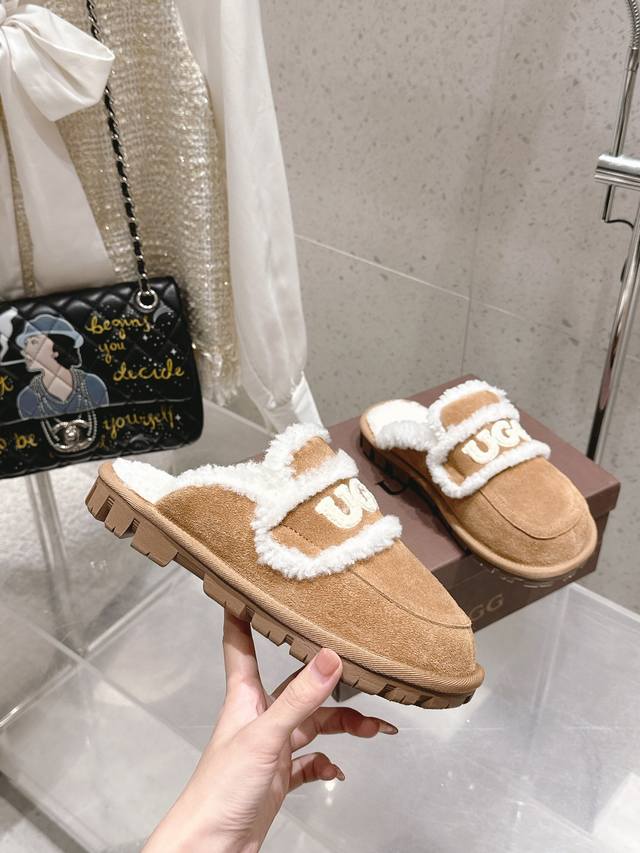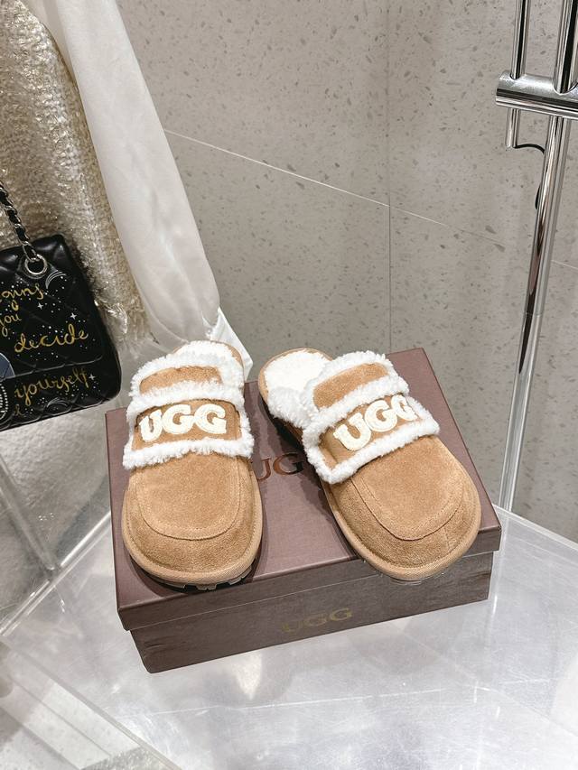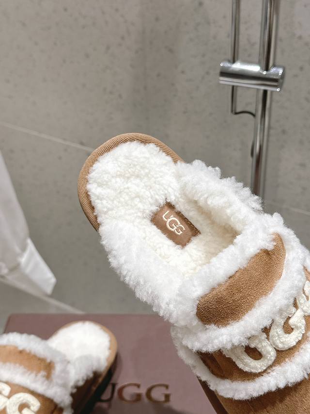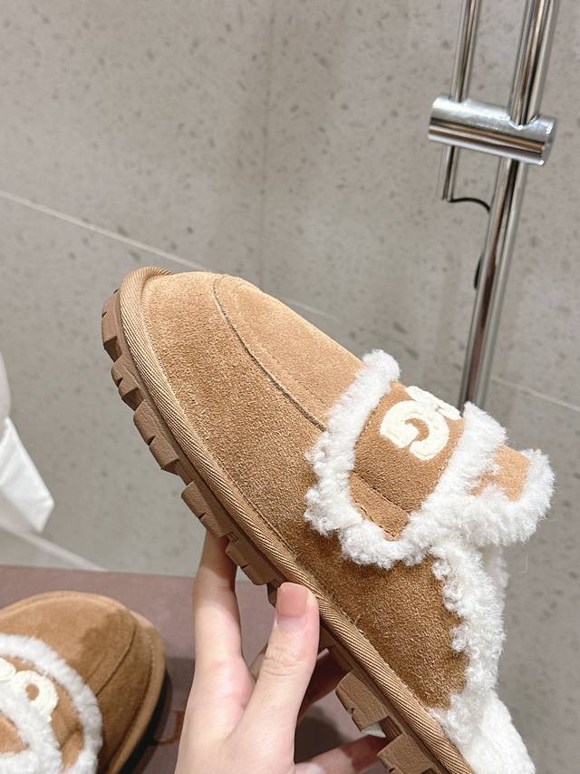 2025Ugg米其林毛毛虫拖鞋,鞋口外翻毛设计,时尚又百搭,面料,高丝光牛反绒,欧洲进口羊羔毛,原版开模大底,,