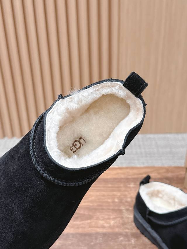 Ugg 油叽叽秋冬薄底雪地靴潮款单品就连明星都要抢着穿呢 周冬雨 这款领口设计先高后低,特别显身材比例,各各都是长腿美女 材质:防水牛反绒 内里真羊毛 Size