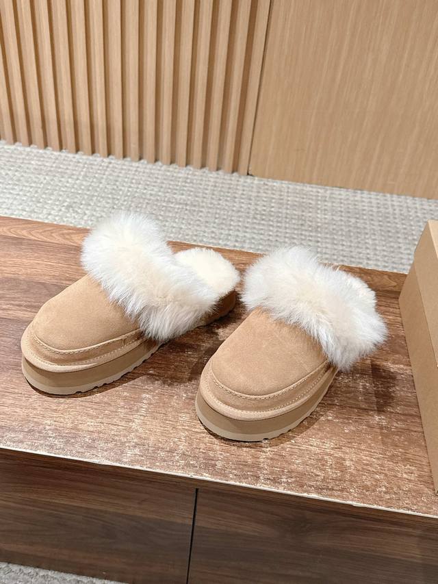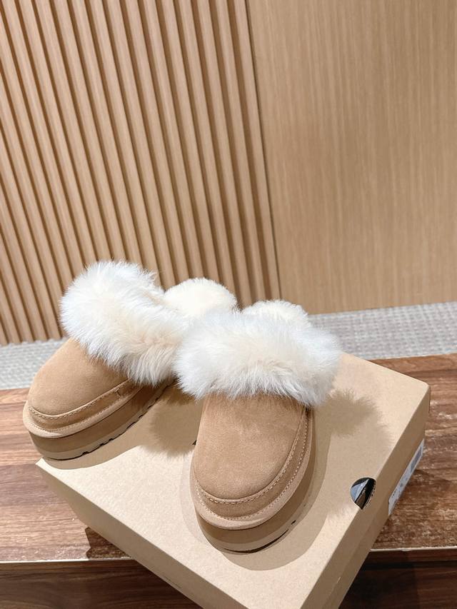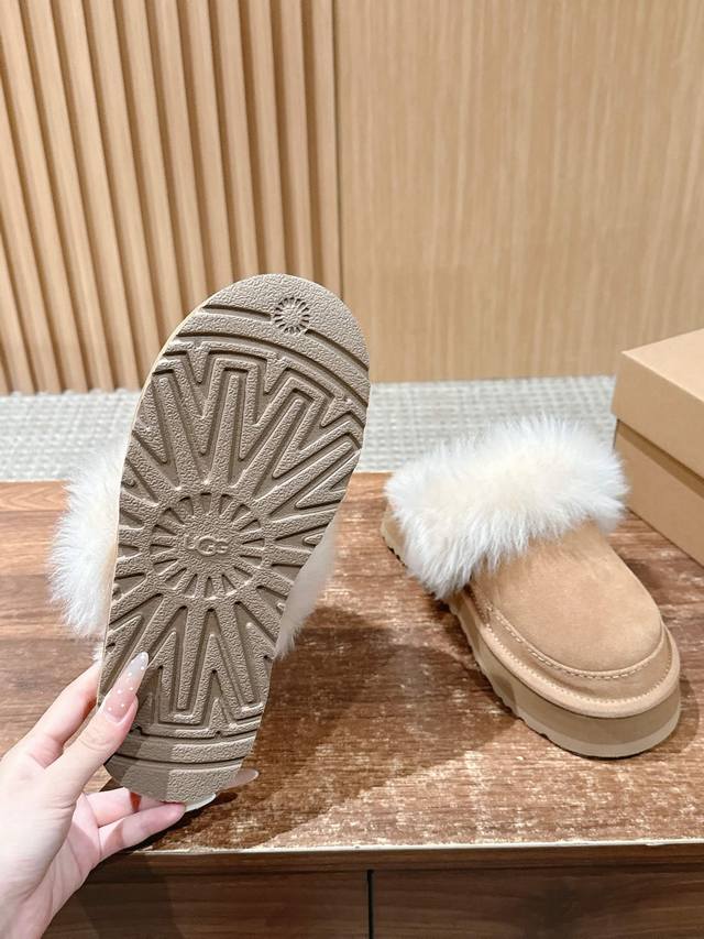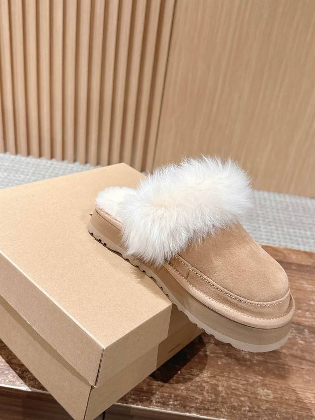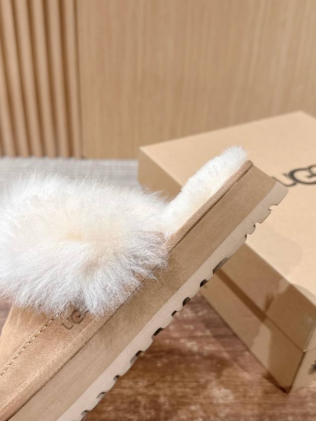 Ugg 油叽叽蒂茨库特秋冬新款女士休闲经典毛毛短靴半拖 DDD Ugg 秋冬新出的秋冬“踩云级”本命短靴,适配所有慵懒系穿搭~羊皮毛一体把双脚裹进暖呼呼的温柔里,厚底悄销垫出轻快感,不管是下楼取快递还是搭配毛衣裙,都能一键Get 躺平式时髦”~半个时尚圈都在穿,轻松拿捏‘毫不赞力的高级感”~羊皮毛一体的质感软 Fufu的,像把小绵羊揣在脚上 DDD 鞋面:翻毛皮 复古肌理,自带随性氛围 DDD 内里:羊皮毛一体 软乎乎锁温,光脚穿都舒服 大底:Eva 厚底 轻量回弹,走路像踩棉花糖 DDD Size:#3