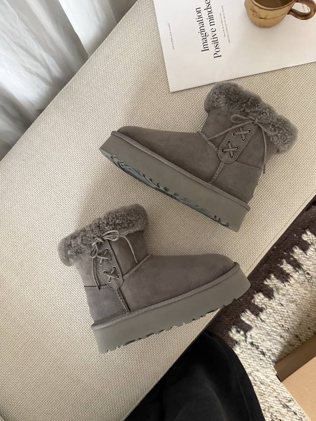 / Ugg . 泰迪蝴蝶结雪地靴 蝴蝶结的甜美很 厚底隐形增高 拉长腿型曲线 泰迪小卷毛 秋冬必须要安排上! Size:35 40