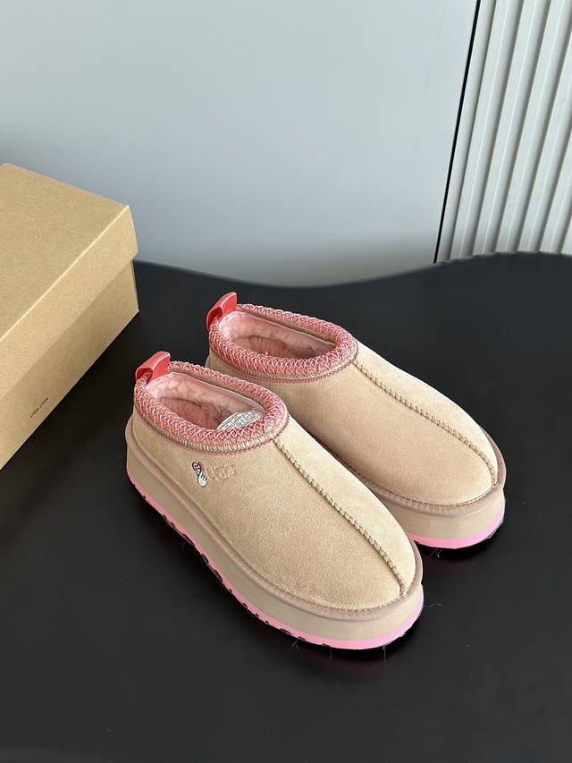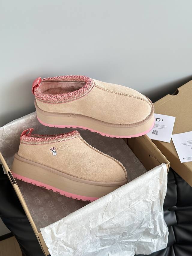 Ugg 秋冬新品塔茨Tazz情人节限定比心厚底羊毛拖鞋一脚蹬毛毛鞋雪地靴 新款毛拖采用民族风编织刺绣复古又时髦,超舒适一脚蹬,超多明星在穿,Ins小红书有多火不用我多说,一到季节就断货的节奏! 隆丰厚实皮毛一体!这款搭茨和经典的雪地靴不同,它的鞋型更倾向于半托一脚蹬,穿脱方便舒适,是很多懒癌星人的心头好 原版定制进口头层牛皮,内里定制保暖羊毛,原版开模超轻发泡材质 底厚: 4.5Cm 女款35-40