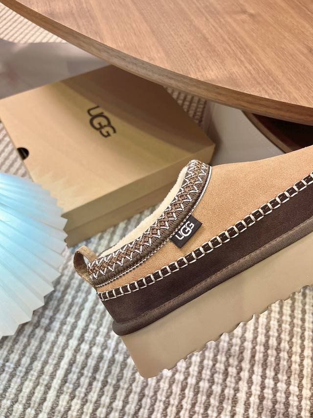 Ugg 秋冬新款 民族风塔茨系列加厚增高款毛毛鞋 一脚蹬 休闲时尚 民族风和轮胎鞋的结合 时尚简 鞋面采用真羊羔毛 内里羊皮毛一体,保暖舒适 加厚大底 鞋口原版