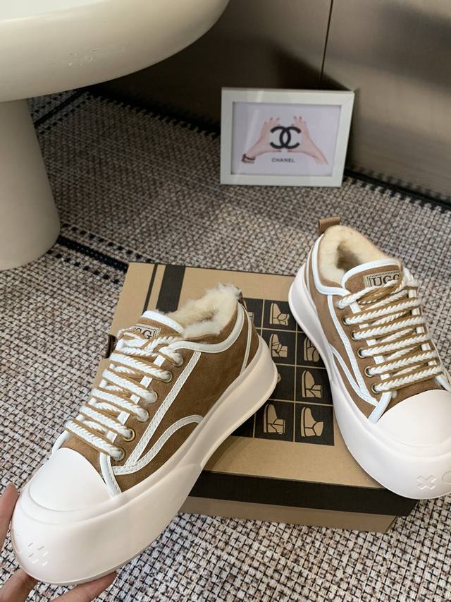 / Ugg 羊毛里休闲鞋 百搭 运动风 牛皮面料 镶边车线工艺 内增高厚底鞋 更显身材 原生羊毛内里 冬天暖暖的过 当下最流行的宽头版型 耐磨防滑橡胶鞋底 适合任何