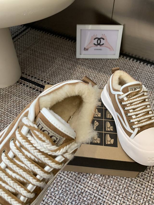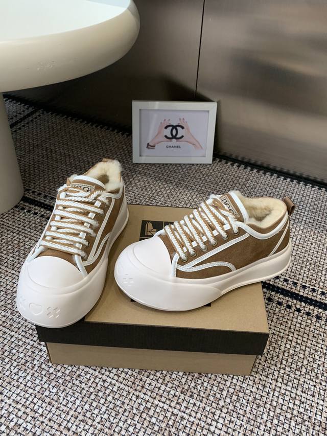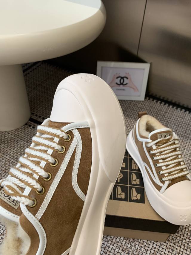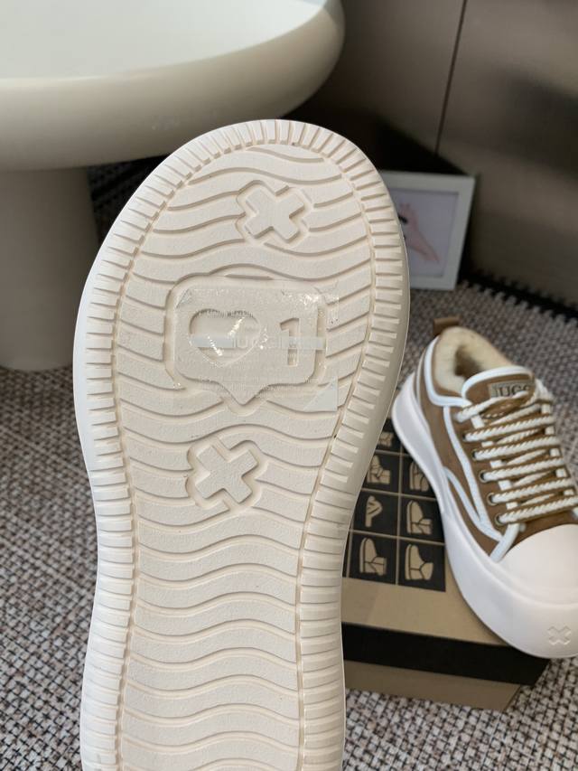 Ugg 羊毛里休闲鞋 百搭 运动风 牛皮面料 镶边车线工艺 内增高厚底鞋 更显身材 原生羊毛内里 冬天暖暖的过 当下最流行的宽头版型 耐磨防滑橡胶鞋底 适合任何