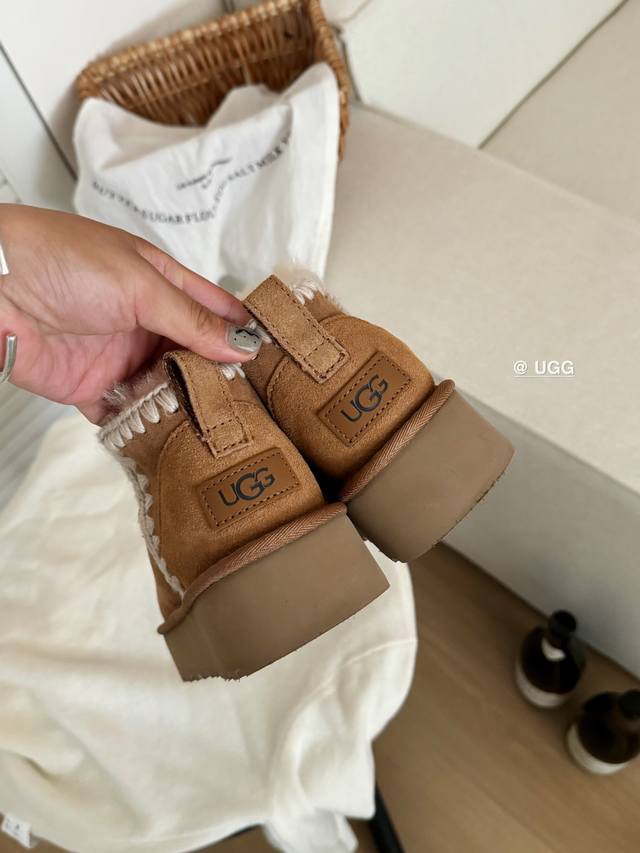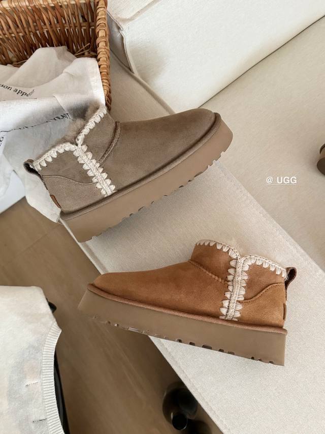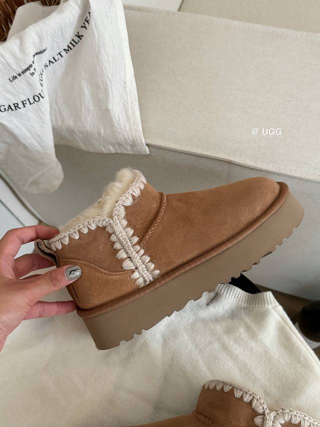 Ugg 迷你厚底 |毛线编织 A级羊皮毛一体 +手工编织毛线 柔软轻翼高弹大底 Size: 35-40