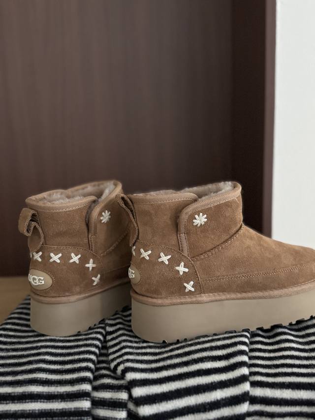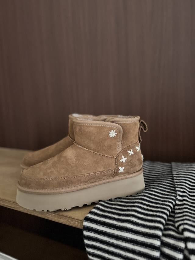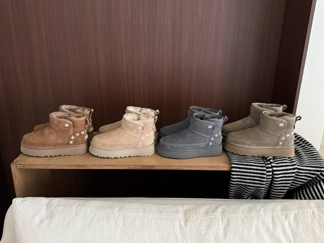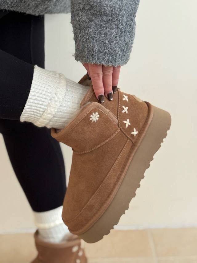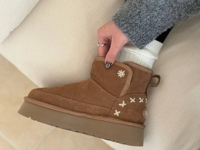 Ugg 韩系刺绣雪地靴 秋冬氛围感拉满 谁能拒绝这种带点小设计的雪地靴啊! 高级又耐脏 毛线刺绣小雪花 甜酷风格直接拉满! 厚底防滑还显腿长 冬天配卫裤是街头潮