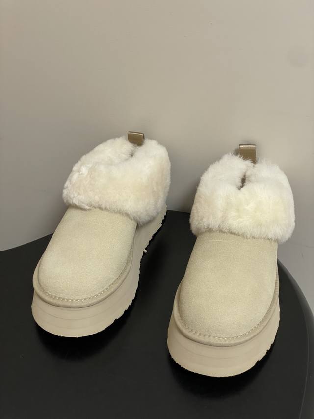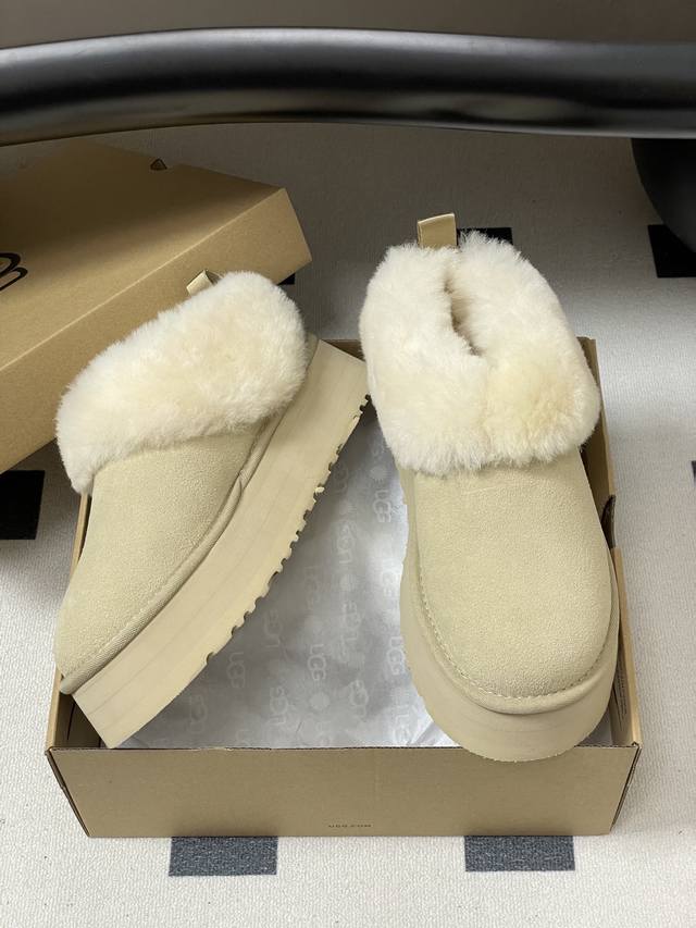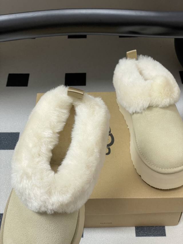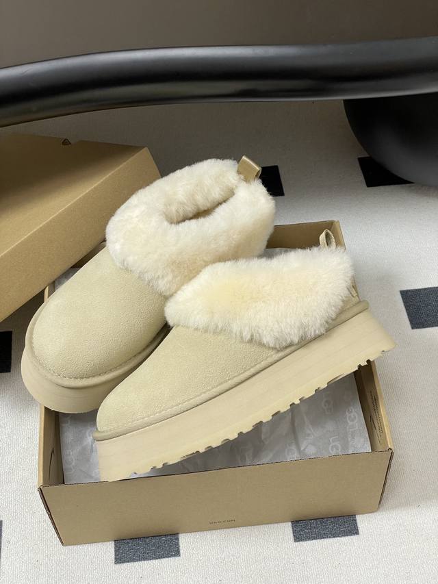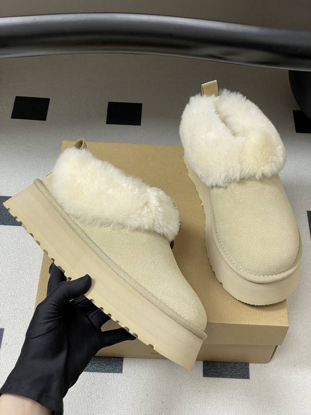 Ugg 2025秋冬新款 Tazzelle 塔茨勒厚底雪地靴圆头厚底茸茸毛鞋 DDD 茸茸的鞋领软乎乎的,贴脚脖子舒服厚底设计穿上显高显腿长,这款Ugg懒人毛毛鞋圆头造型很可爱,平时配裤子,裙子都可以最关键是“懒人友好’,一脚蹬就能出门,走路也稳。 DDD 毛绒厚实柔软,上脚软糯舒服,搭配一双普通的袜子,都很好看,氛围感拉满。实物和图片一样好看,栗色的麂皮材质很有质感,毛毛又软又厚实,穿着柔软又舒服。 DDD 鞋面内里:皮毛一体 DDD 鞋底:Eva发泡大底 DDD 码数:35-40 DDD