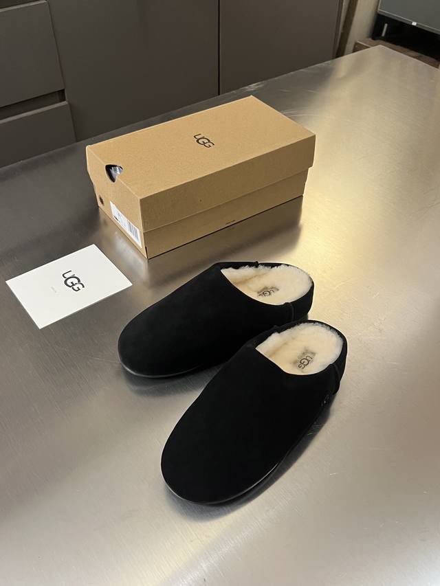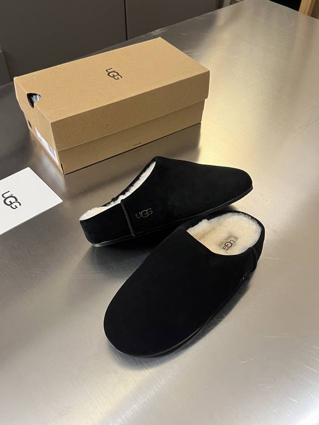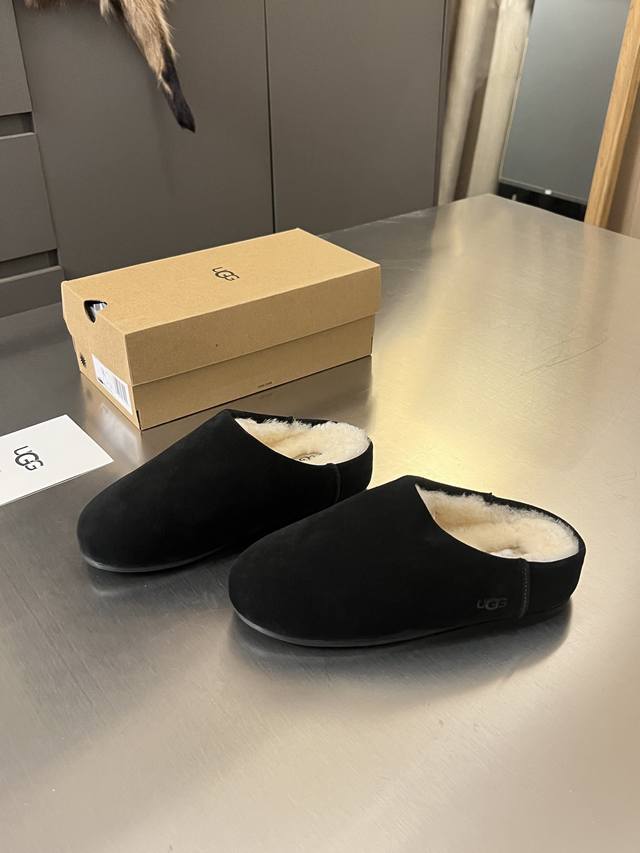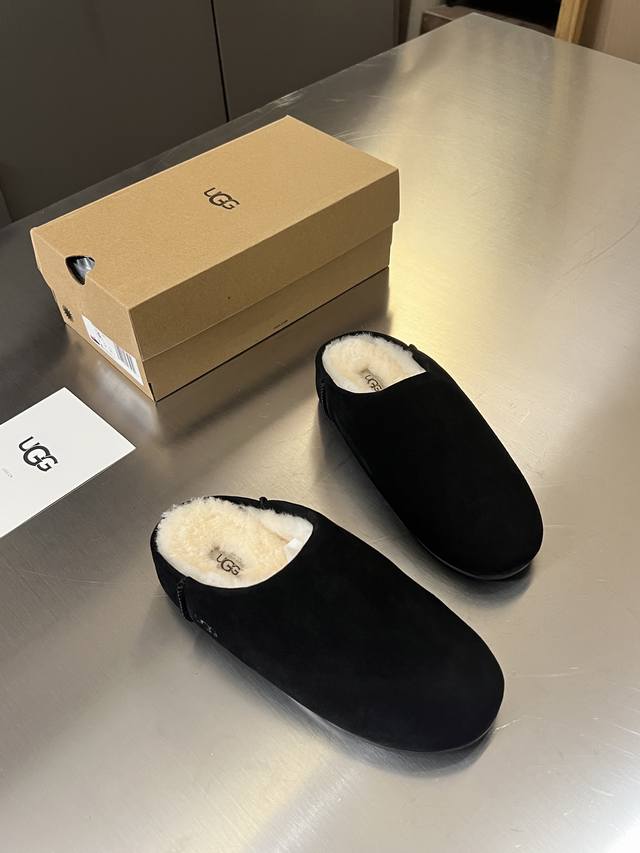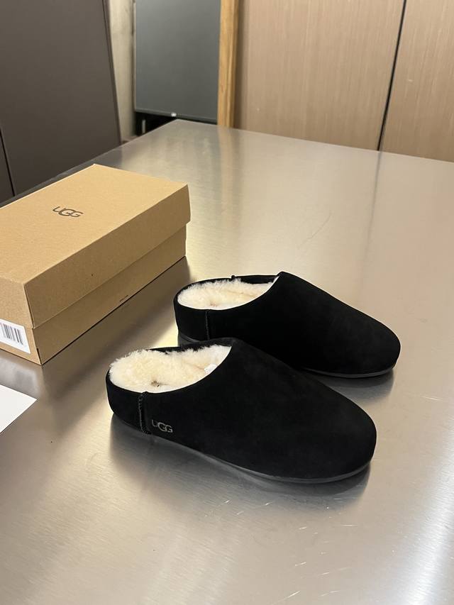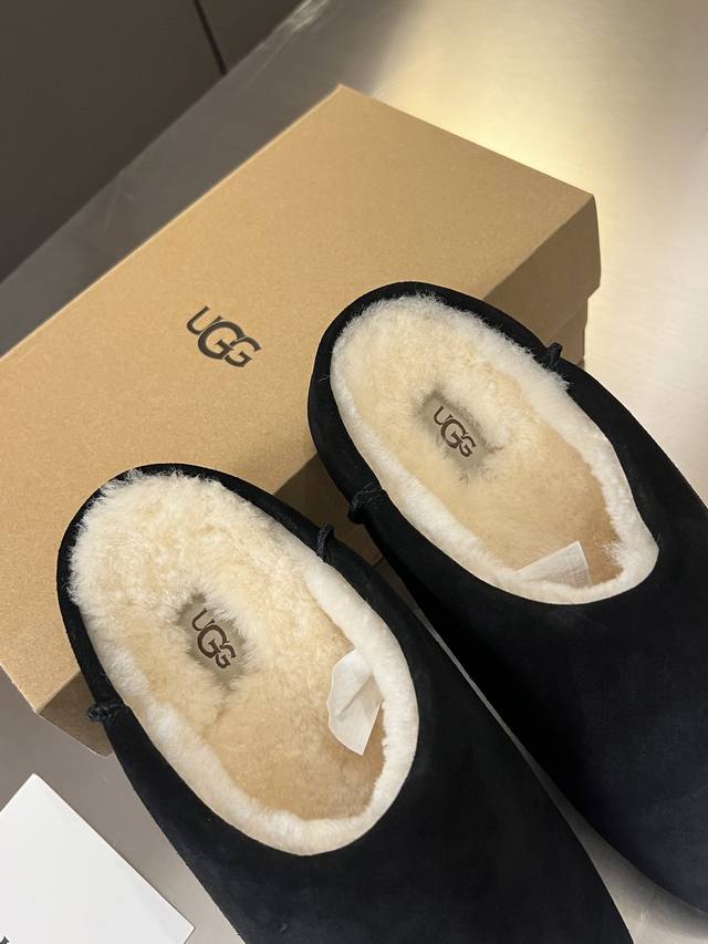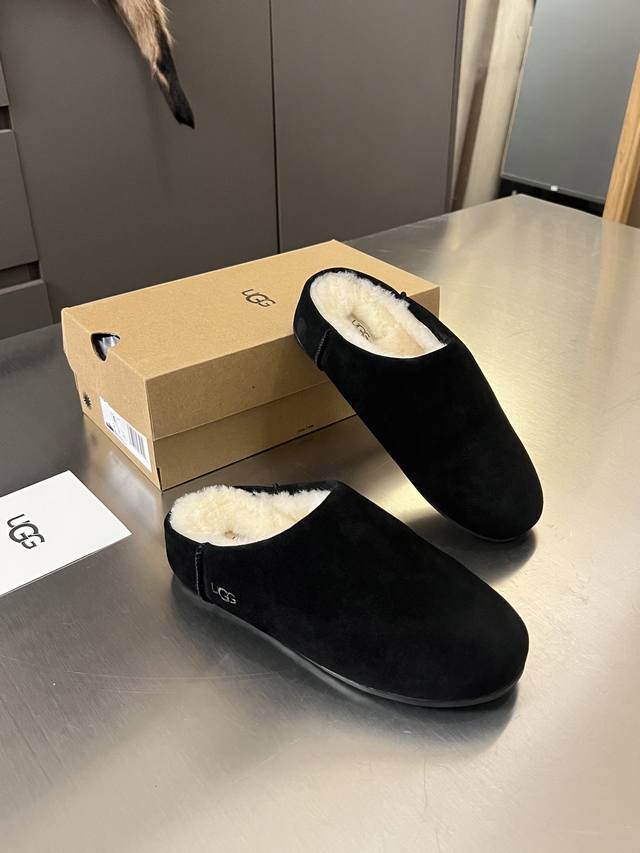 Ugg 2025秋季新款 明星同款浅口休闲轻薄一脚蹬包头懒人鞋 埃莱亚便鞋新生系列 轻便橡胶薄底 时刻轻盈时髦 半托一脚蹬轻松解锁松弛脚感 经典翻毛皮搭配10毫米羊毛里衬 鞋内底Ugg热压花品牌徽标 质感满满 颜色:黑色 栗色 浅黄油色 Size:35-40 工厂P现货供应