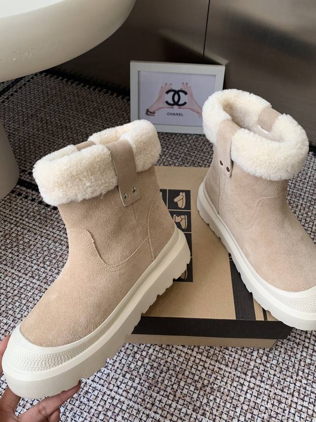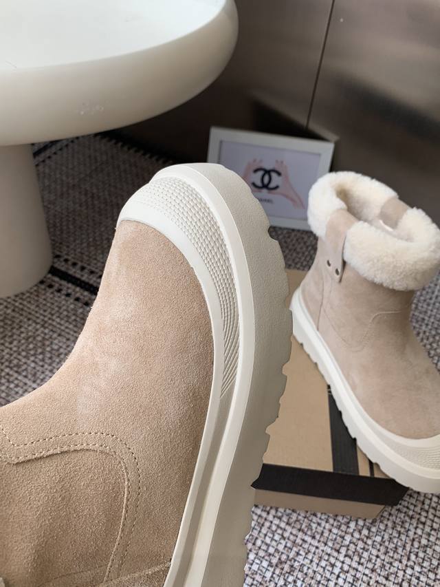 Ugg 25秋冬新品雪地靴 王一博同款大底来啦 舒适软糯的踩感 洋气又优雅的款式 方便的一脚蹬是我们出街的首选 进口的羊羔卷毛颜色和大底颜色相呼应点缀了整个鞋子