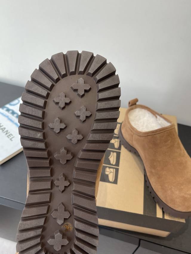 Ugg 25秋冬新款土豆羊毛拖鞋 巨显可爱和时髦 拉长腿一绝 5公分的内增高 舒适的橡胶大底 出奇的暖和 真的是让我无法自拔 真太可爱了~ 毛茸茸的羊毛是选用欧