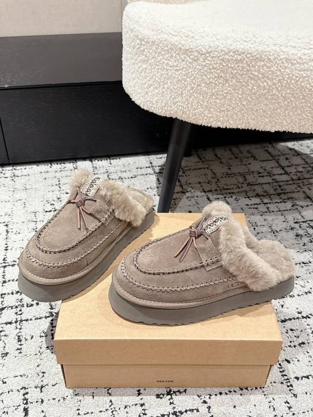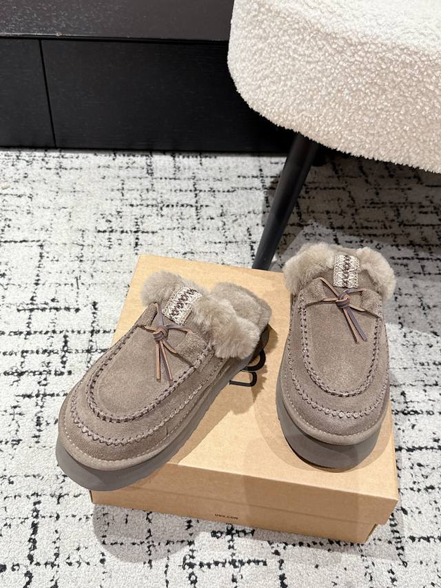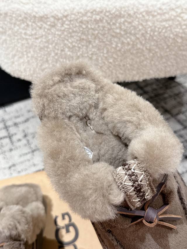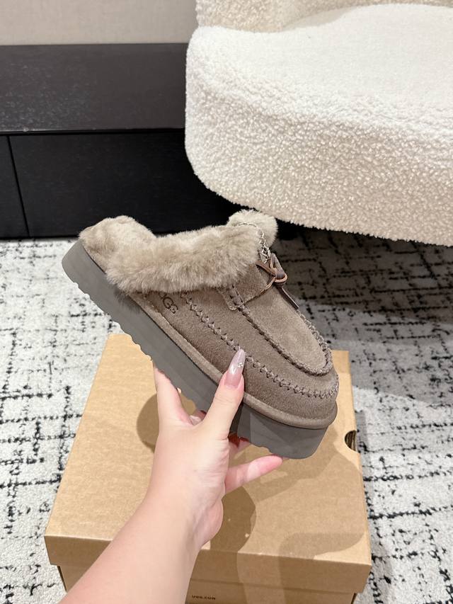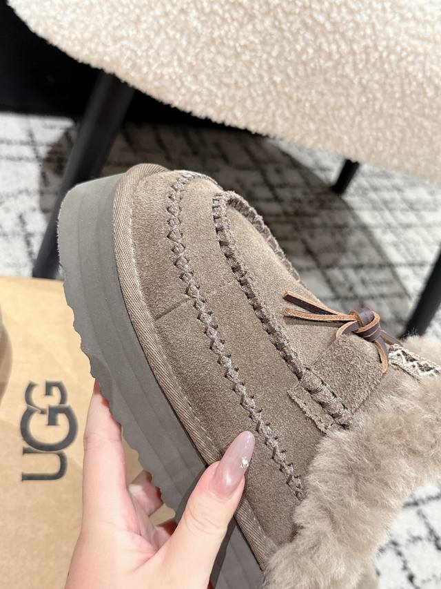 Ugg 25 最新 雪地靴 半拖 DDD 年度最火Ugg厚底雪地靴剧透来了 DDD 忍不住要剧透一下,看到市场各种版本满天飞,独家定制对色开模的组合底马上就要出货了 这款Ugg厚底短款裸靴,正品并不是皮毛一体的,材料是牛绒贴合编织羊毛 顾名思义,基本市场所有Ugg都是用皮毛一体来做,因为那样直接做套包鞋容易出产量,而且成本比较低,做起来又快! 但是弊端是鞋子非常容易变形走样,如果天天穿没一周就严重变形 正品这款Ugg是用做时装鞋 的做法去做,牛绒贴合羊毛的材料拿来全套包,再蒙鞋,牵扯到很多工序,要加鞋头港