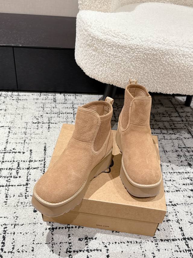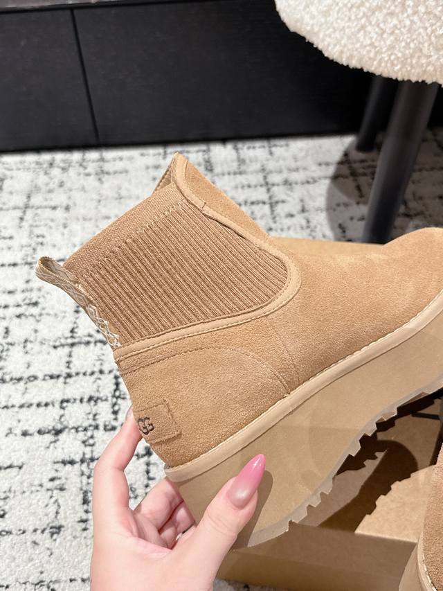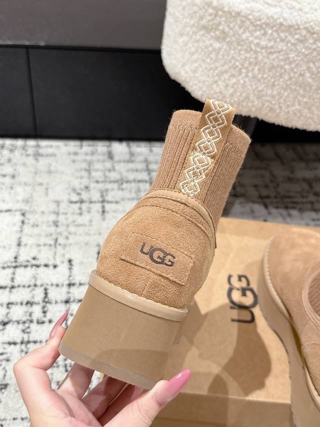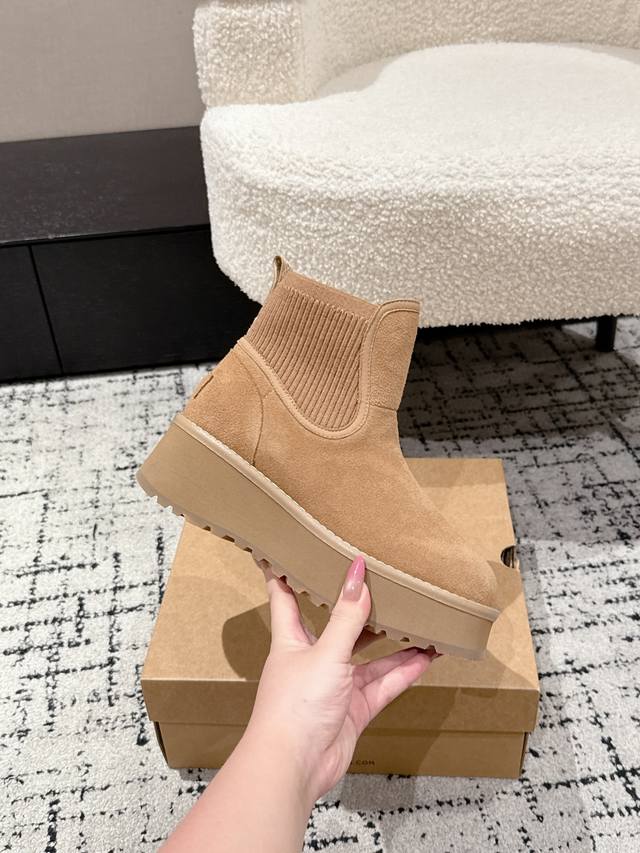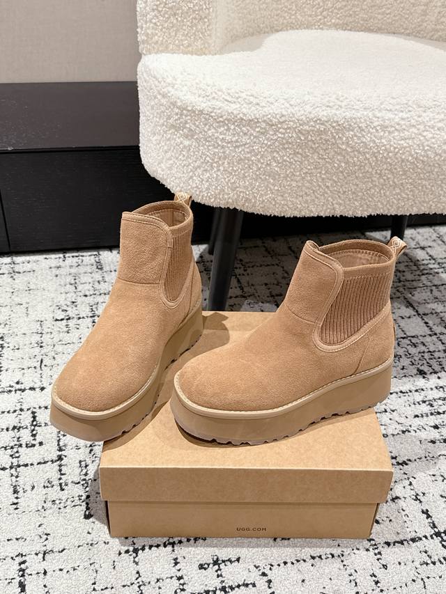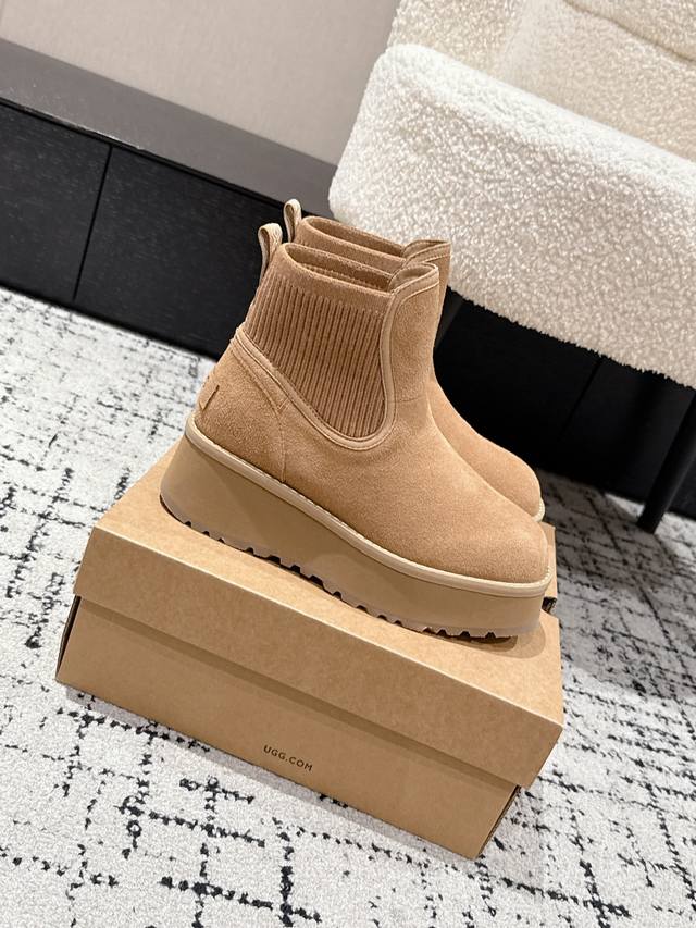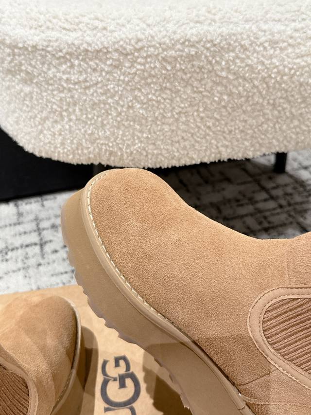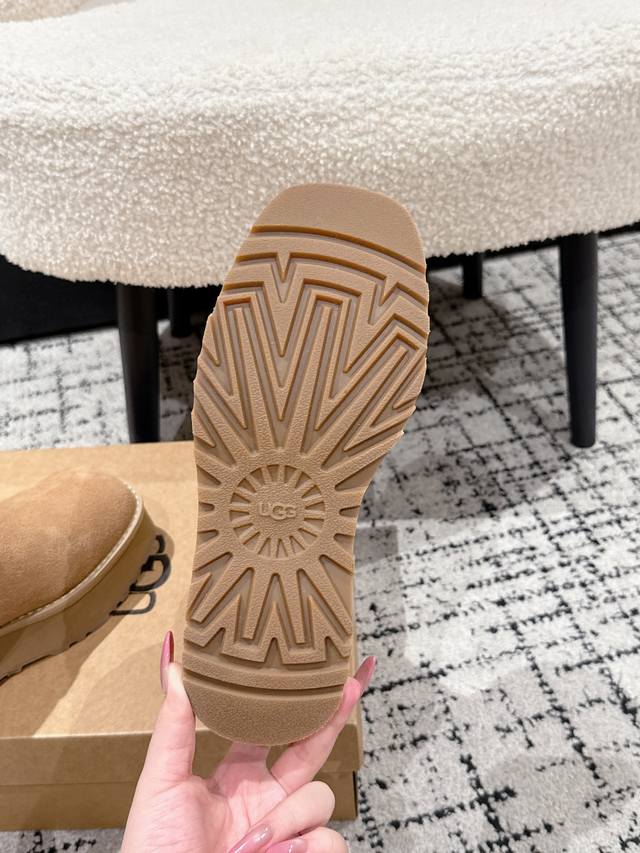 Ugg 25 最新 雪地靴 年度最火Ugg厚底雪地靴剧透来了 忍不住要剧透一下,看到市场各种版本满天飞,独家定制对色开模的组合底马上就要出货了 这款Ugg厚底短款裸靴,正品并不是皮毛一体的,材料是牛绒贴合编织羊毛 顾名思义,基本市场所有Ugg都是用皮毛一体来做,因为那样直接做套包鞋容易出产量,而且成本比较低,做起来又快! 但是弊端是鞋子非常容易变形走样,如果天天穿没一周就严重变形 正品这款Ugg是用做时装鞋 的做法去做,牛绒贴合羊毛的材料拿来全套包,再蒙鞋,牵扯到很多工序,要加鞋头港宝,然后定型布,再经过