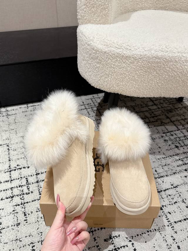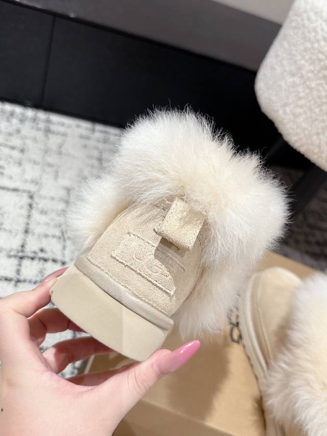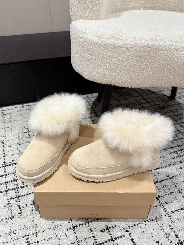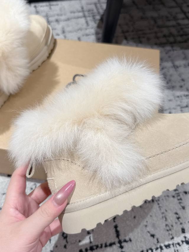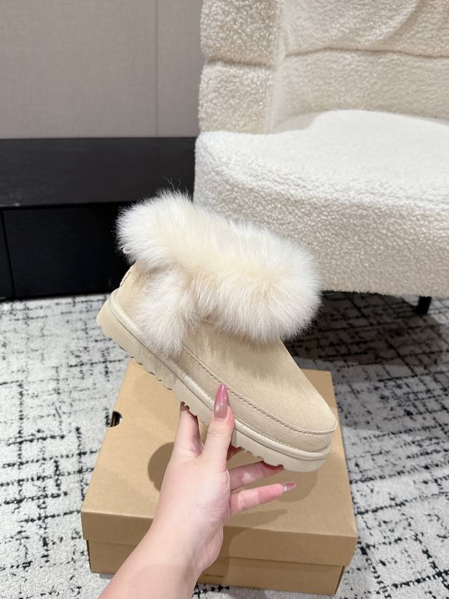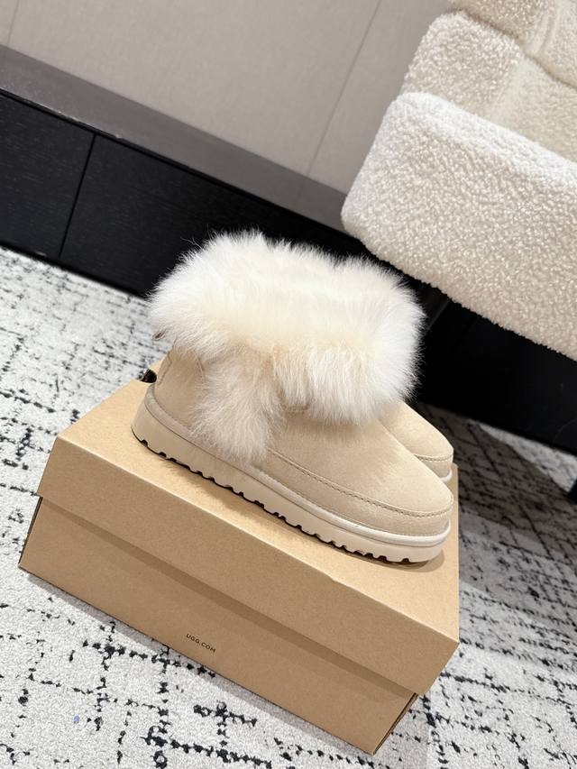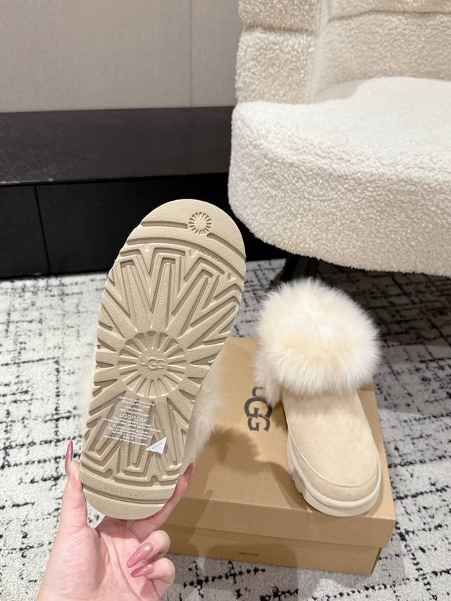 Ugg 25 最新 雪地靴 年度最火Ugg厚底雪地靴剧透来了 忍不住要剧透一下,看到市场各种版本满天飞,独家定制对色开模的组合底马上就要出货了 这款Ugg厚底短款裸靴,正品并不是皮毛一体的,材料是牛绒贴合编织羊毛 顾名思义,基本市场所有Ugg都是用皮毛一体来做,因为那样直接做套包鞋容易出产量,而且成本比较低,做起来又快! 但是弊端是鞋子非常容易变形走样,如果天天穿没一周就严重变形 正品这款Ugg是用做时装鞋 的做法去做,牛绒贴合羊毛的材料拿来全套包,再蒙鞋,牵扯到很多工序,要加鞋头港宝,然后定型布,再经过