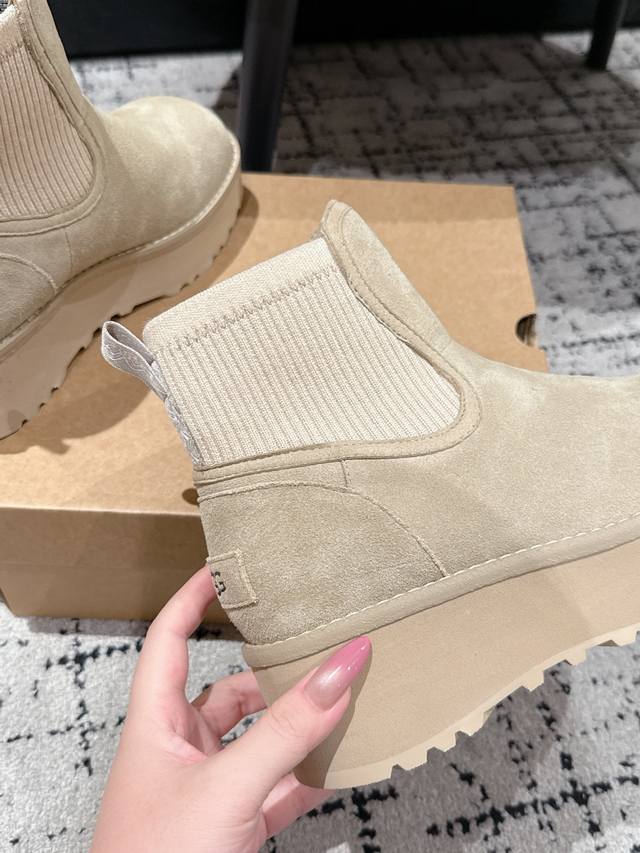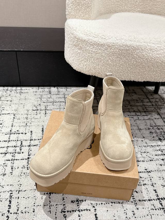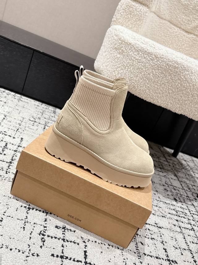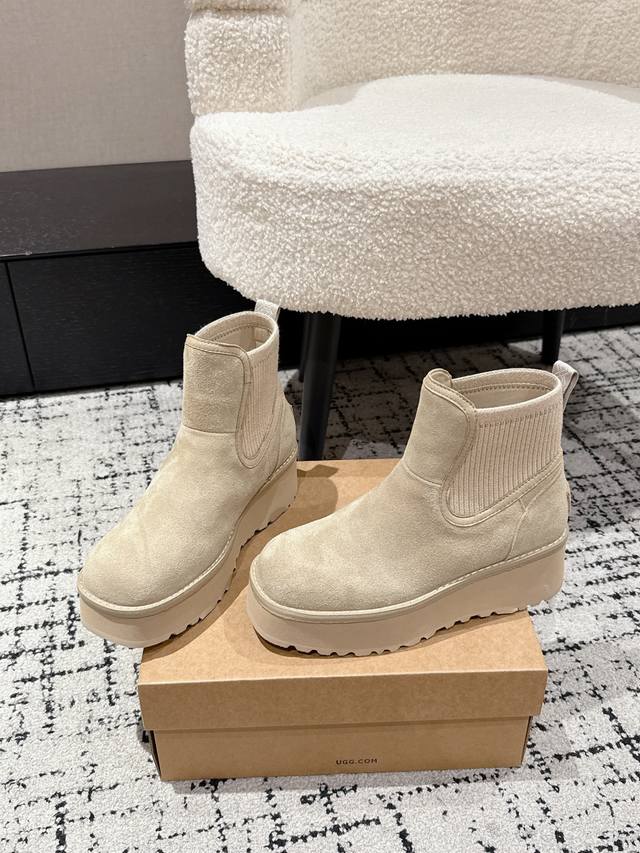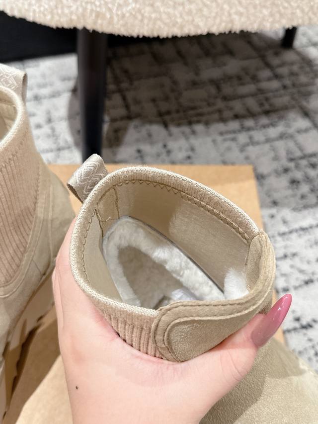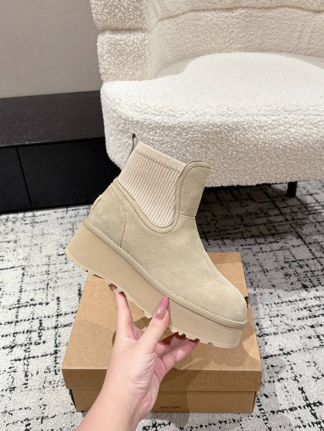 Ugg 25 最新 雪地靴 DDD 年度最火Ugg厚底雪地靴剧透来了 DDD 忍不住要剧透一下,看到市场各种版本满天飞,独家定制对色开模的组合底马上就要出货了 这款Ugg厚底短款裸靴,正品并不是皮毛一体的,材料是牛绒贴合编织羊毛 顾名思义,基本市场所有Ugg都是用皮毛一体来做,因为那样直接做套包鞋容易出产量,而且成本比较低,做起来又快! 但是弊端是鞋子非常容易变形走样,如果天天穿没一周就严重变形 正品这款Ugg是用做时装鞋 的做法去做,牛绒贴合羊毛的材料拿来全套包,再蒙鞋,牵扯到很多工序,要加鞋头港宝,然