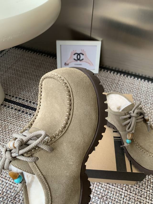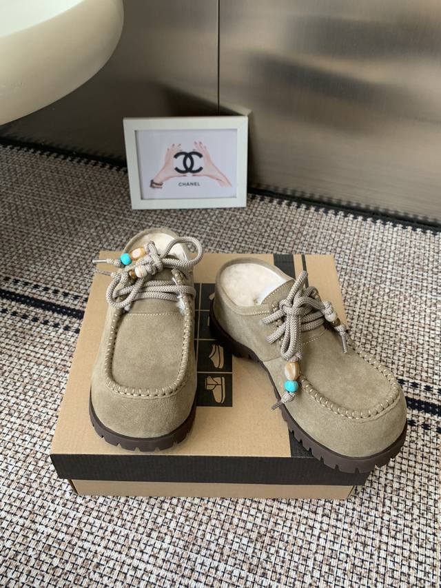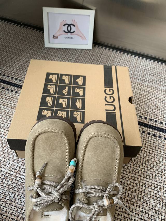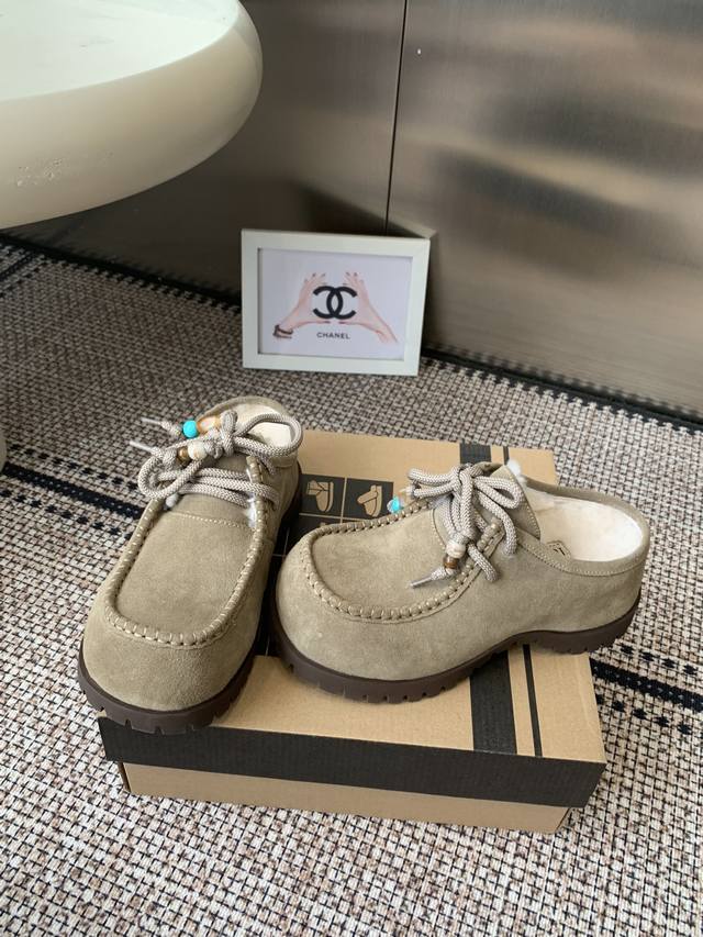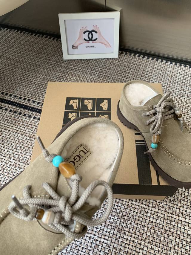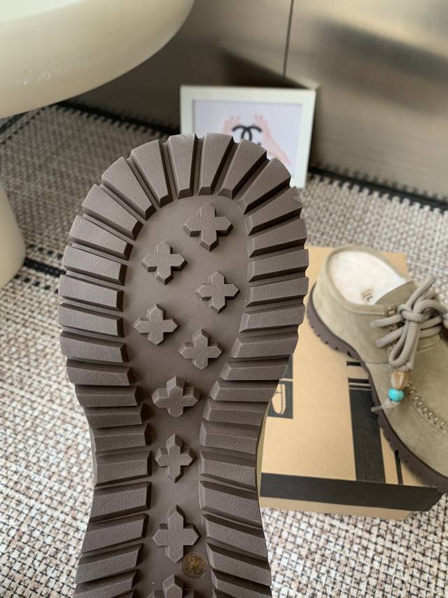 Ugg 25Ss秋冬新款土豆羊毛拖鞋 复古的亚克力扣饰 巨显可爱和时髦 拉长腿一绝 5公分的内增高,舒适的橡胶大底 出奇的暖和 真的是让我无法自拔 真太可爱了~