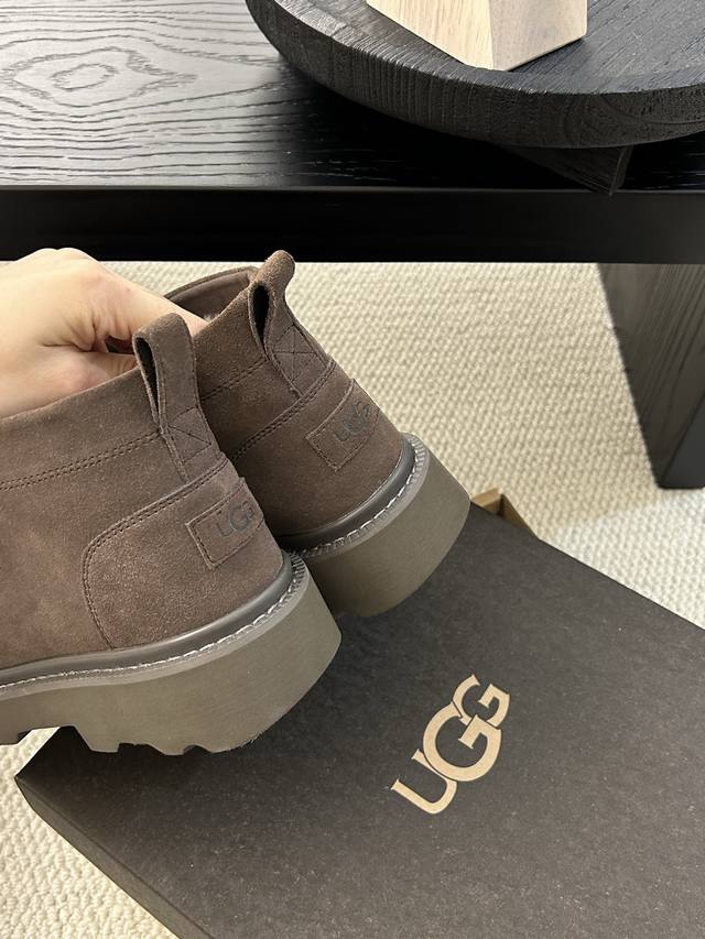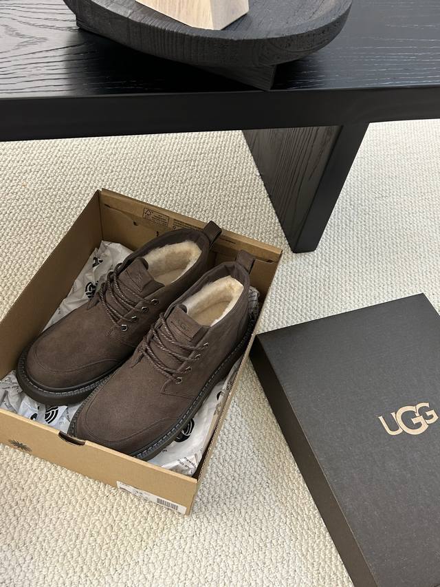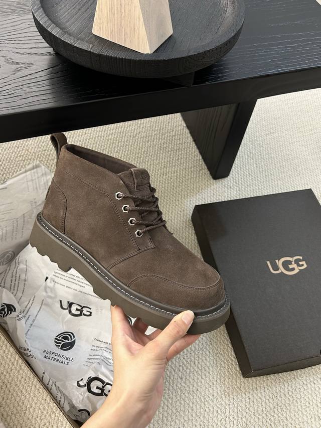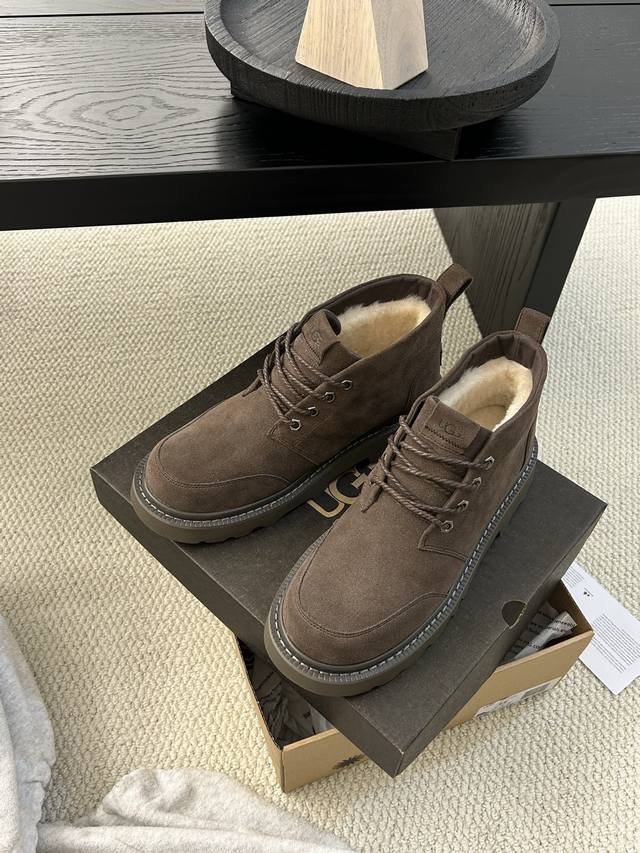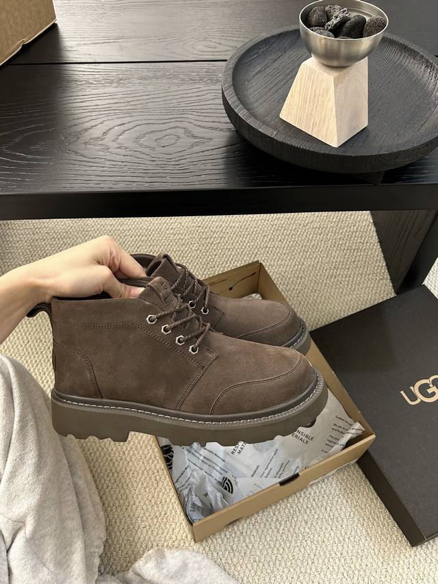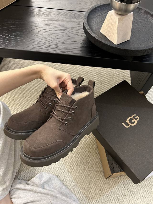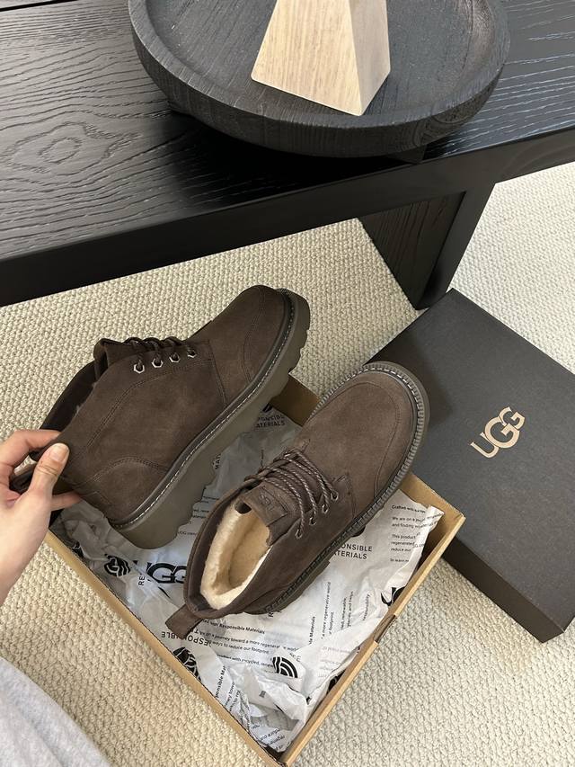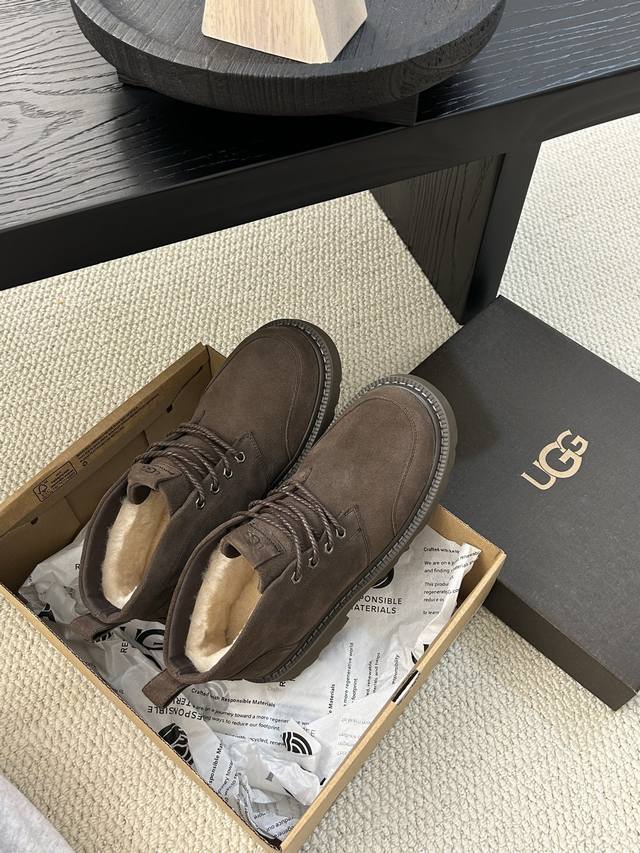 Ugg2025新款男士系带拉格系列马丁靴,帅气十足,牛皮羊毛,防滑大底,男士必备 颜色:栗色。黑色 糖浆色 !码数39-44码!