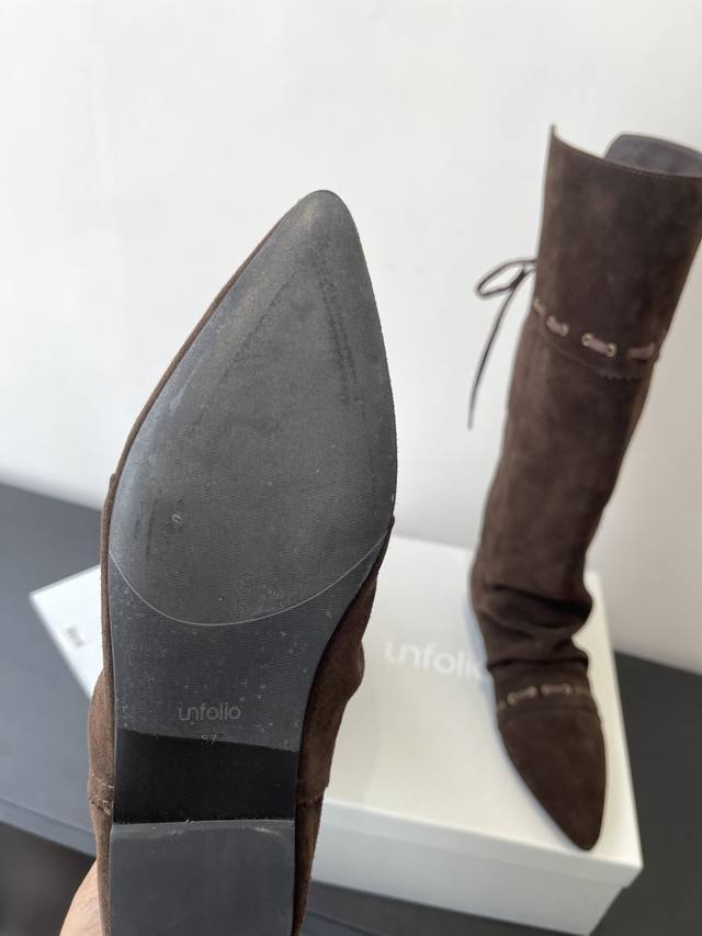 Unfolio 小众品牌 秋冬新款 复古长靴 堆叠感及膝靴 堆叠感踝靴 黑色甄选小牛皮 皮质光滑细腻,纹理自然流畅 触感紧实且富有光泽 呈现低调优雅的质感 反毛牛皮款则自带慵懒随性气质 绒面触感柔和温润 随穿着愈发贴合足部 尽显松弛自在的风格 内里均采用高弹织物材质 春夏季节穿着不闷脚 秋冬包裹感拉满 兼具保暖性与舒适亲肤性 既修饰腿部线条 久穿不累 鞋底选用超软橡胶材质 柔韧度优异 能随步伐灵活弯曲 同时具备可靠的抗滑性能 让每一步都稳健舒适 码数: 35-39 40.41定做不退换
