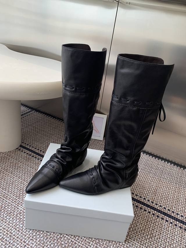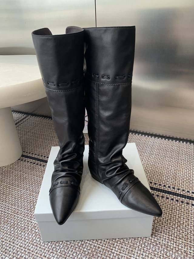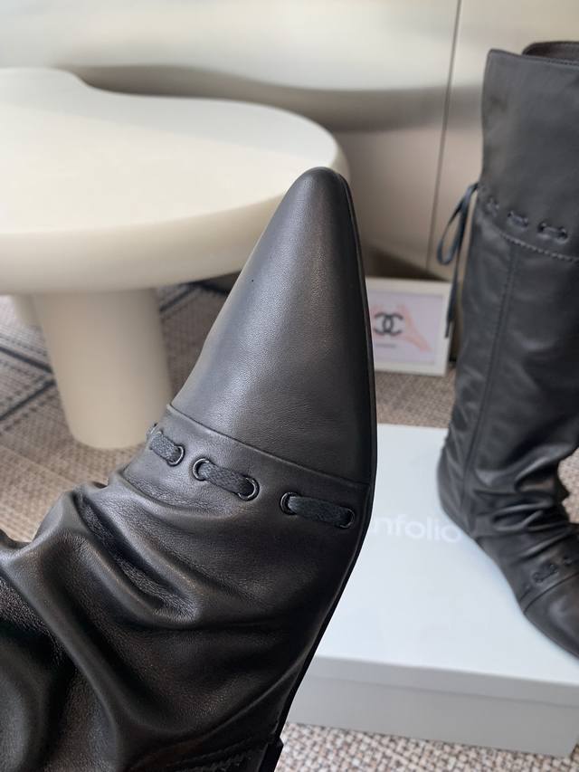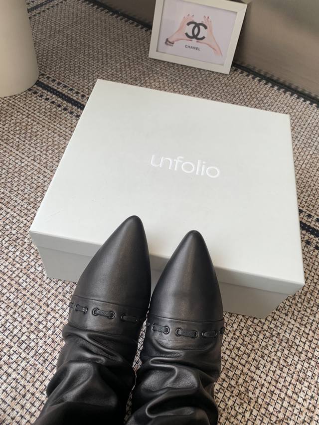 Unfolio 小众品牌 秋冬新款 复古长靴 堆叠感及膝靴 堆叠感踝靴 黑色甄选小牛皮 皮质光滑细腻,纹理自然流畅 触感紧实且富有光泽 呈现低调优雅的质感 反毛牛皮款则自带慵懒随性气质 绒面触感柔和温润 随穿着愈发贴合足部 尽显松弛自在的风格 内里均采用高弹织物材质 春夏季节穿着不闷脚 秋冬包裹感拉满 兼具保暖性与舒适亲肤性 既修饰腿部线条 久穿不累 鞋底选用超软橡胶材质 柔韧度优异 能随步伐灵活弯曲 同时具备可靠的抗滑性能 让每一步都稳健舒适 码数: 35-39 40.41定做不退换