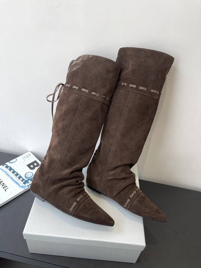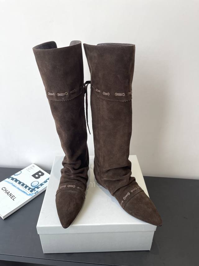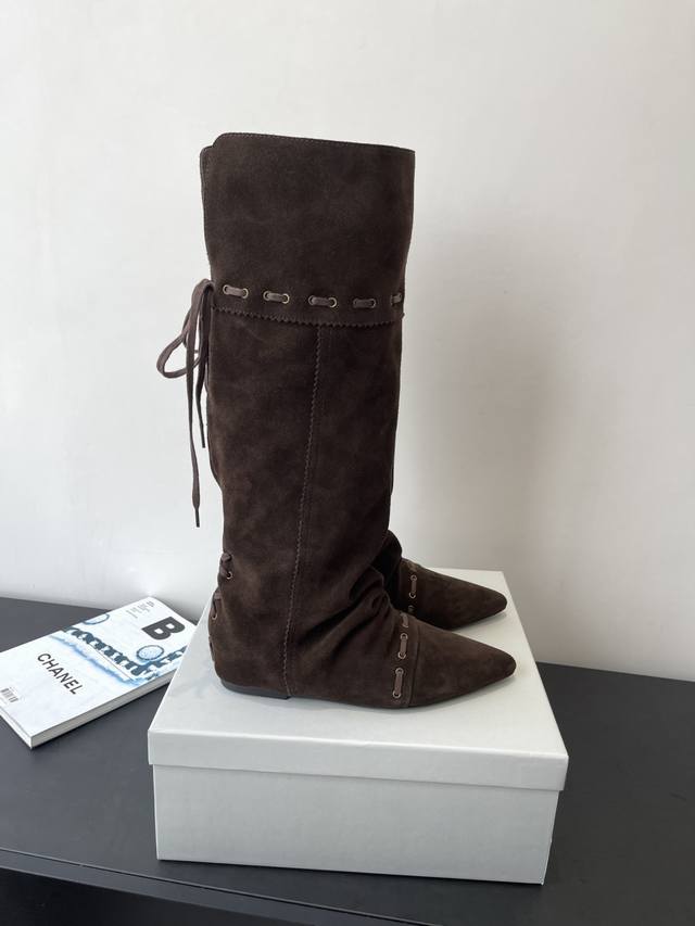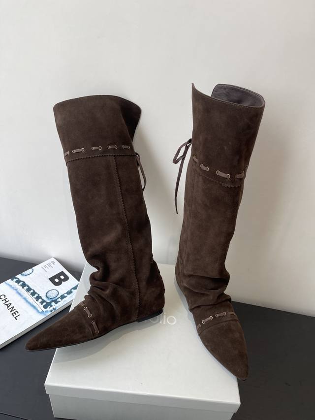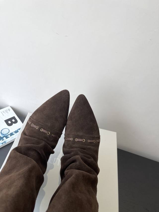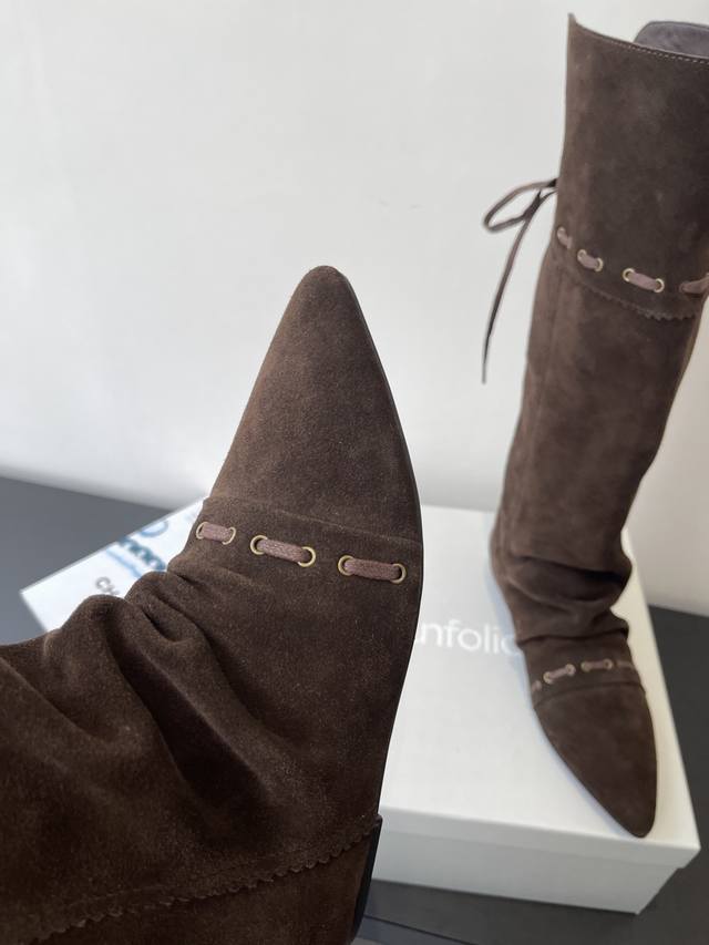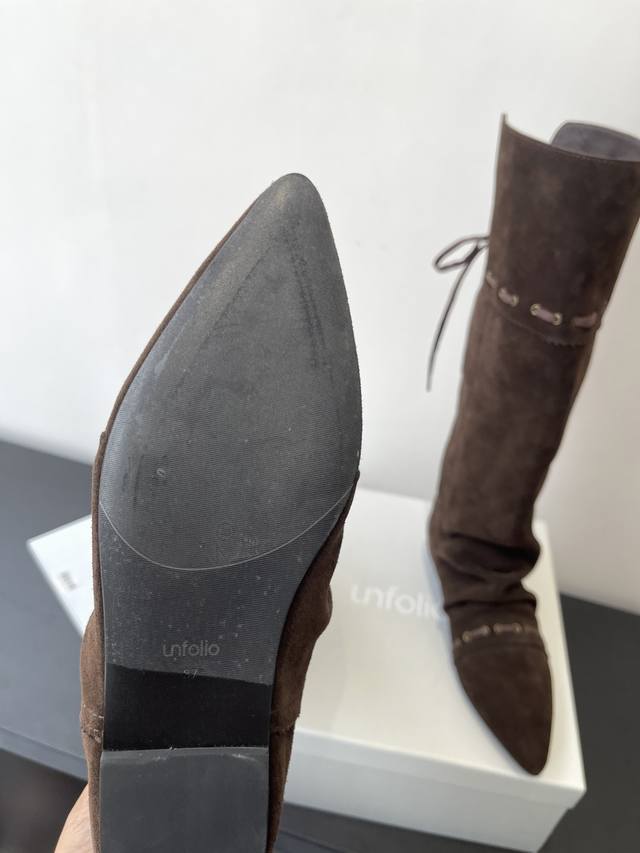 Unfolio 小众品牌 秋冬新款 复古长靴 堆叠感及膝靴 DDD 堆叠感踝靴 黑色甄选小牛皮 皮质光滑细腻,纹理自然流畅 触感紧实且富有光泽 呈现低调优雅的质感 反毛牛皮款则自带慵懒随性气质 绒面触感柔和温润 随穿着愈发贴合足部 尽显松弛自在的风格 内里均采用高弹织物材质 春夏季节穿着不闷脚 秋冬包裹感拉满 兼具保暖性与舒适亲肤性 既修饰腿部线条 久穿不累 鞋底选用超软橡胶材质 柔韧度优异 能随步伐灵活弯曲 同时具备可靠的抗滑性能 让每一步都稳健舒适 DDD 码数: 35-39 40.41定做不退换 D