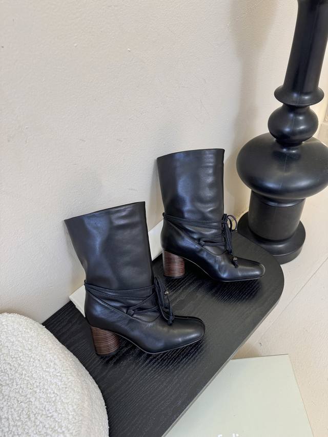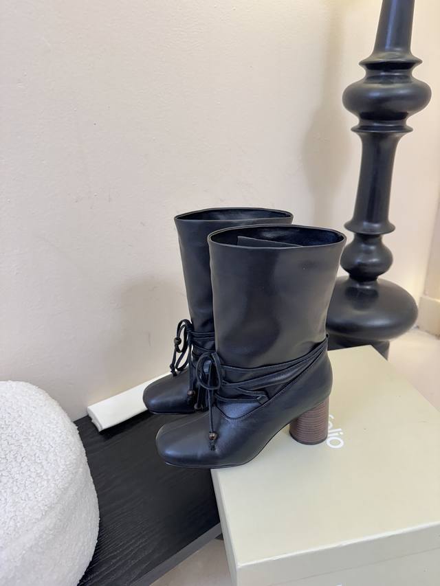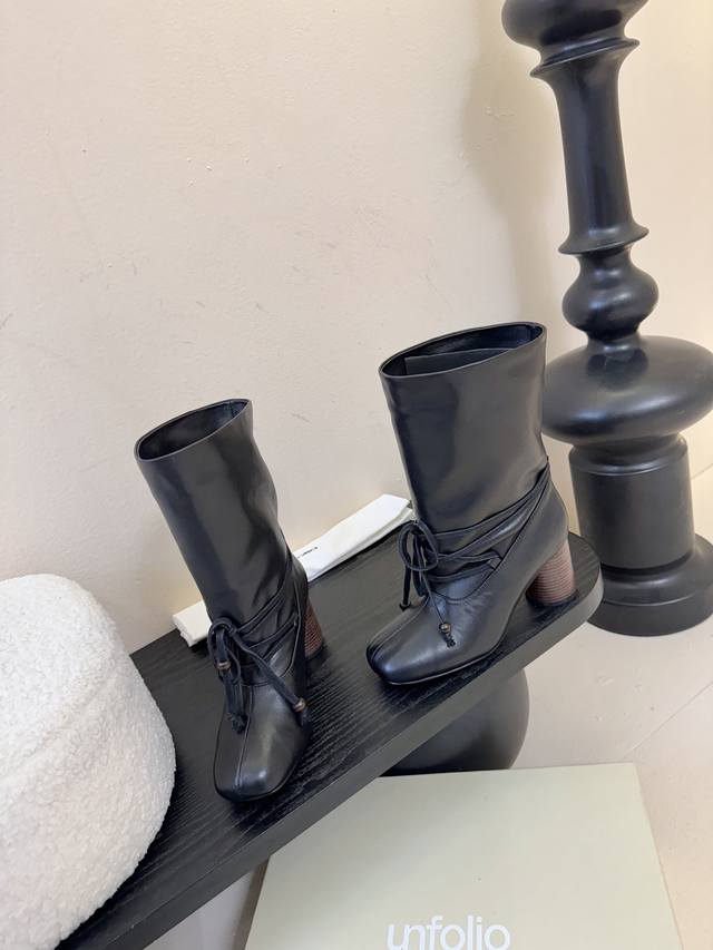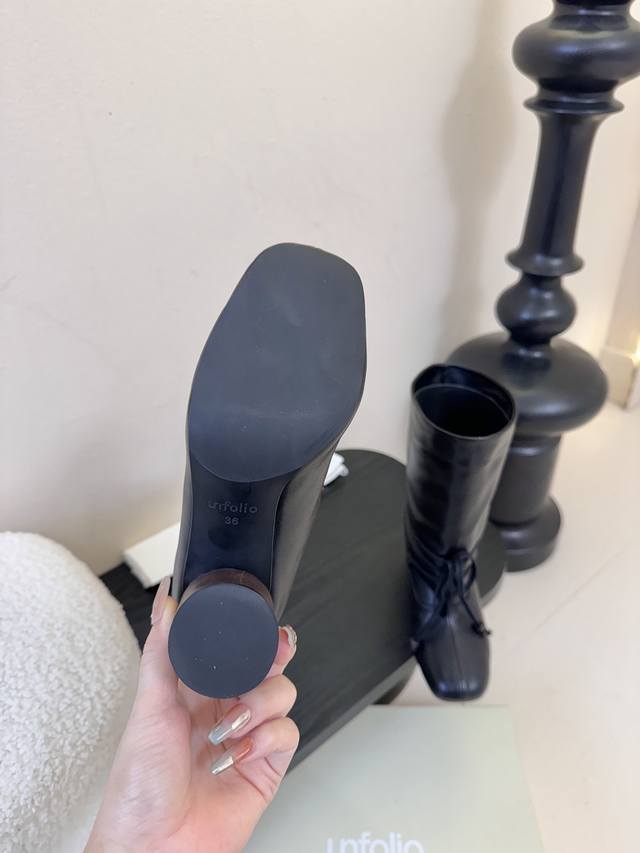 / Unfolio 秋冬新品 Unfolio褶皱绑带靴|把“暗黑高级感”焊在秋冬穿搭里 柔滑皮革揉出随性褶皱 绑带设计锁住小众腔调 木质粗跟踩出复古气场 这双靴把暗