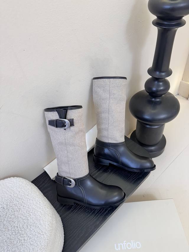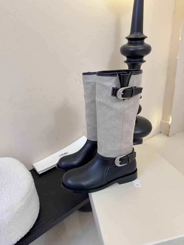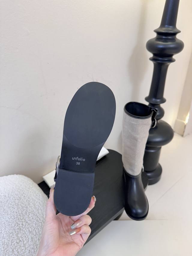 / Unfolio 秋冬新品 Unfolio这双长靴太会了 深浅棕拼接 复古又有层次 金属扣一搭 酷飒感直接拉满 高筒设计衬得腿型超好看 秋冬穿搭有它 轻松穿出时尚