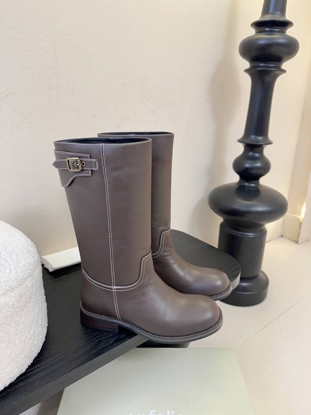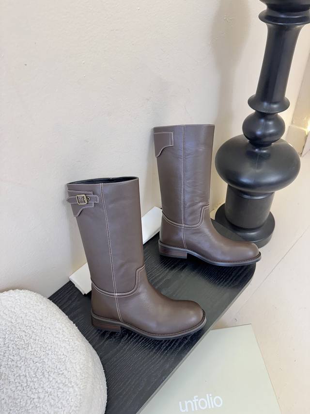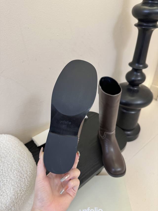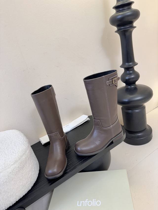 Unfolio 秋冬新品 Unfolio骑士靴|把“复古酷感”穿成秋冬标配 油蜡皮质感自带复古滤镜 金属扣带锁住飒爽气场 这双长靴把骑士风玩出了高级感 利落靴型