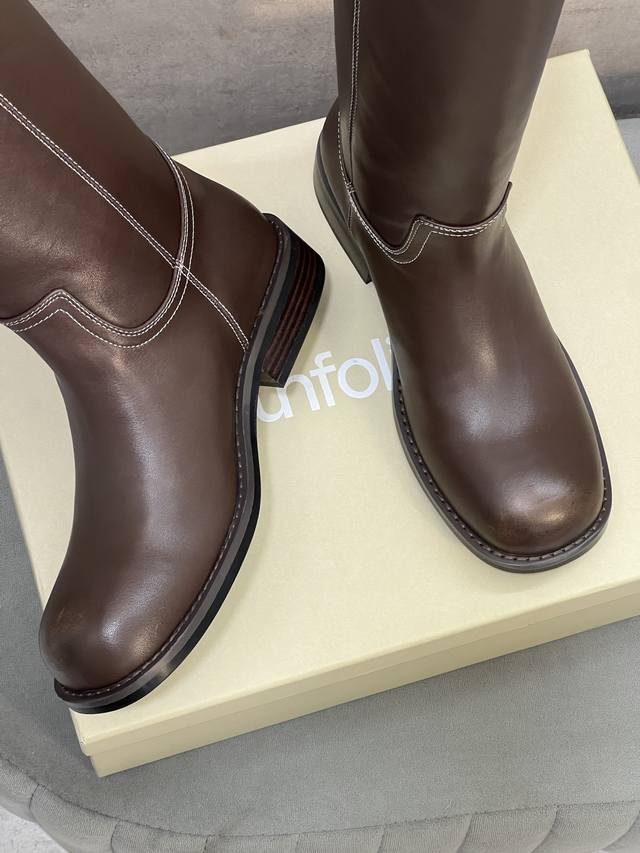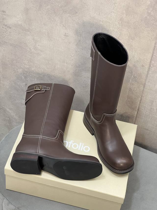 / Unfolio 秋冬新款皮带搭扣圆头直筒靴 鞋面:牛皮 内里:羊皮 大底:原版大底 Size:35-41 40.41定做不退换