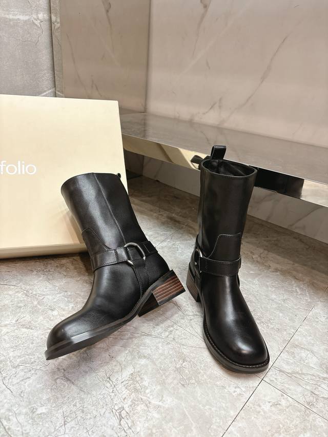 / Unfolio 2025秋冬新款辣妹风西部牛仔靴,不一样的马丁靴,清新学院风、都市通勤风都能轻松驾驭,可盐可甜百变风格秋冬穿搭的百搭单品对版高丝光羊京面料,羊皮