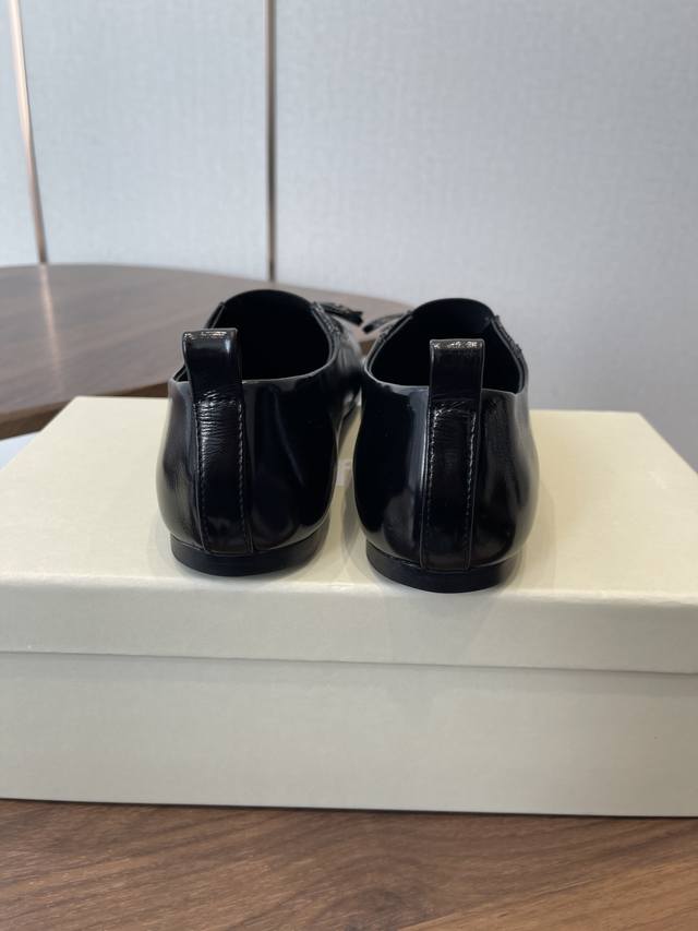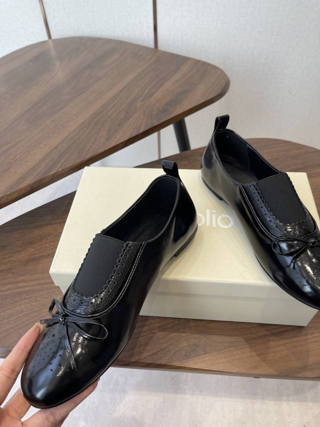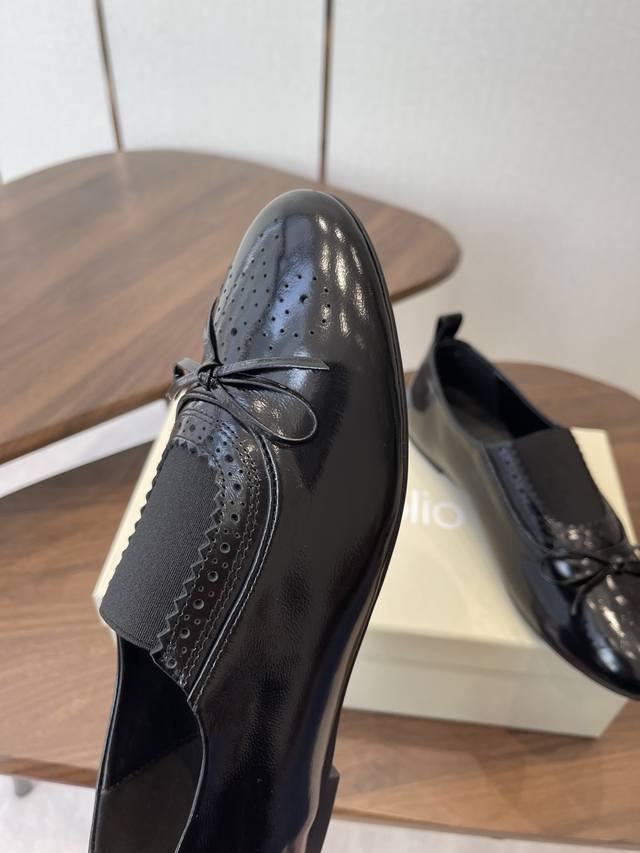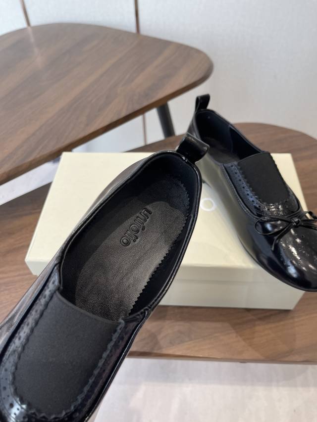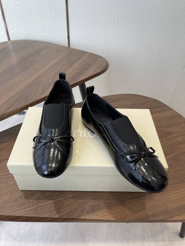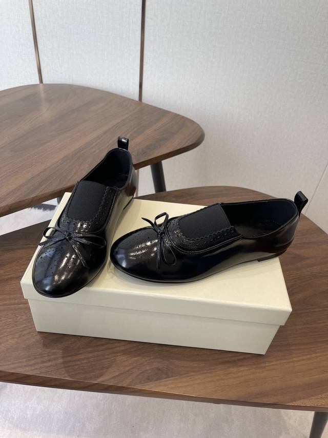 FFF Unfolio26Ss英伦风布洛克雕花蝴蝶结平底鞋单鞋 乐福鞋 DDD 将乐福鞋的慵懒随性与芭蕾舞鞋的柔美精致结合,加入英伦布洛克雕花、蝴蝶结等复古细节,既有法式优雅的松弛感,又带复古学院风的腔调。鞋头做镂空雕花,边缘搭配蕾丝花边装饰,工艺细节丰富; DDD 鞋底为平底设计,兼顾美观与日常穿着的舒适度。 DDD 鞋型为浅口平底,鞋跟无高度,后提环设计,穿脱便捷且贴合脚部,整体版型偏圆润可爱,弱化了硬朗感,更显温柔。 DDD 鞋面:牛皮 DDD 内里:羊皮 DDD 鞋底:原版开模大底 DDD 码数: