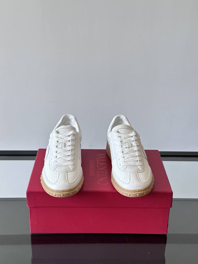 Valentin* 华伦天*情侣款休闲板鞋,时尚百搭单品,小牛皮重工打造 橡胶鞋底装饰 Vlogo Signature 和铆钉细节 头层牛皮内里,上脚舒适有型 时尚感十足!原盒包装,多色可选! Size:35-45