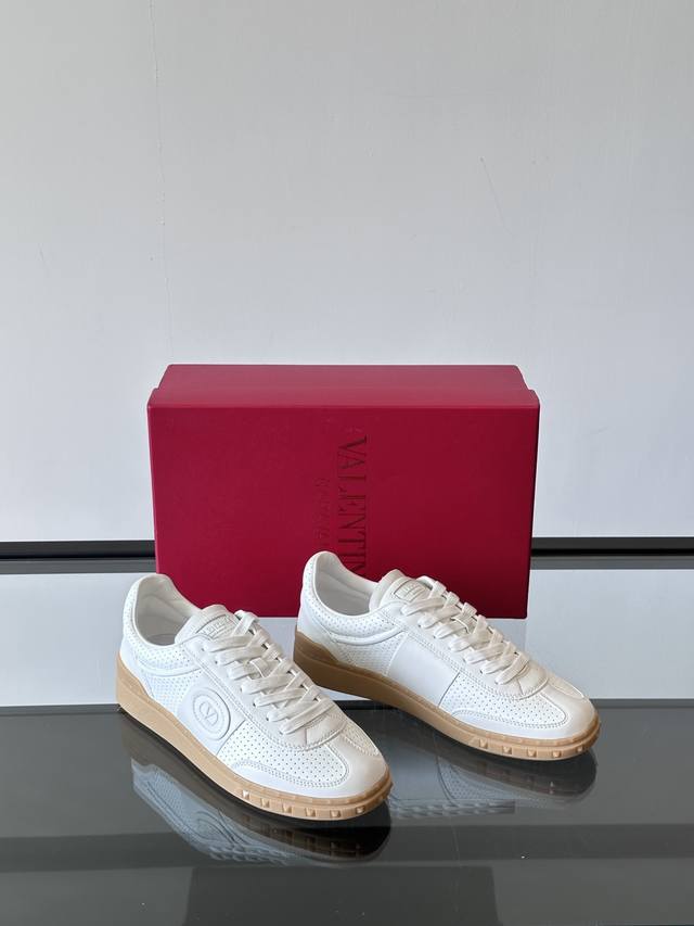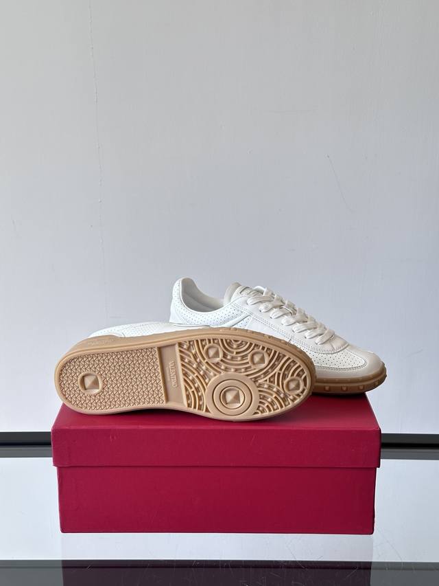 / Valentin* 华伦天*情侣款休闲板鞋,时尚百搭单品,小牛皮重工打造 橡胶鞋底装饰 Vlogo Signature 和铆钉细节 头层牛皮内里,上脚舒适有型
