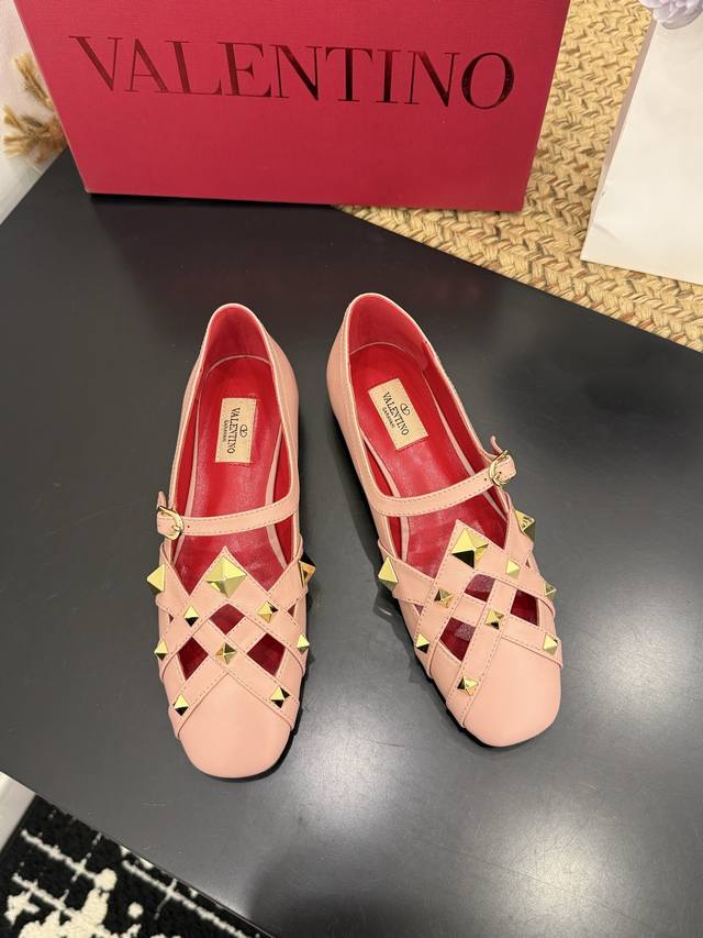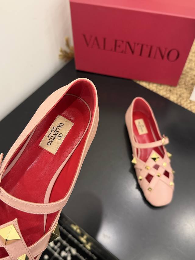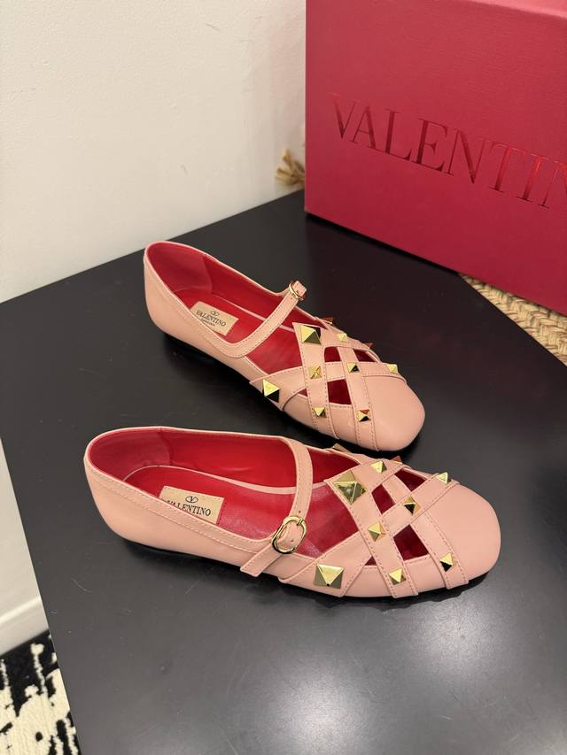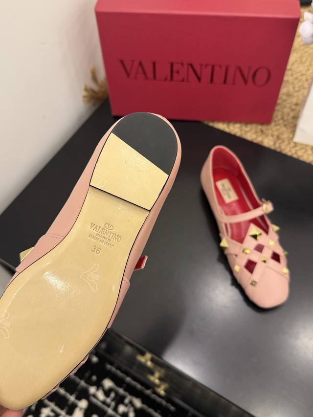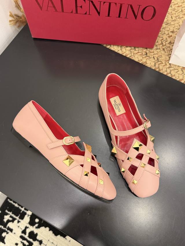 / Valent*No 圆头平底铆钉单鞋。名媛气质女人味十足,怎么搭配都好看。鞋面牛皮,羊皮内里及垫。真皮大底。 DDD 码数:35-41 40、41定制不退换 D