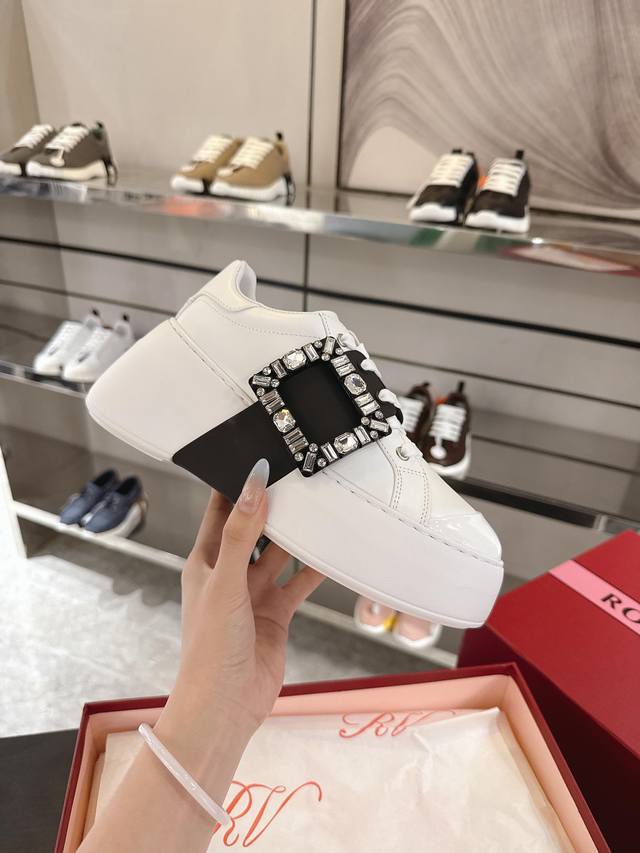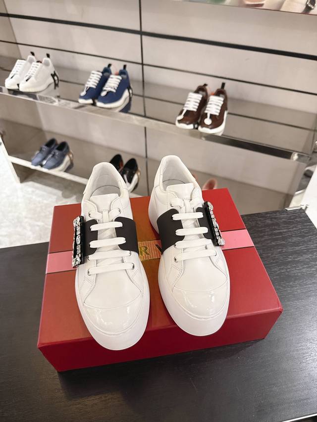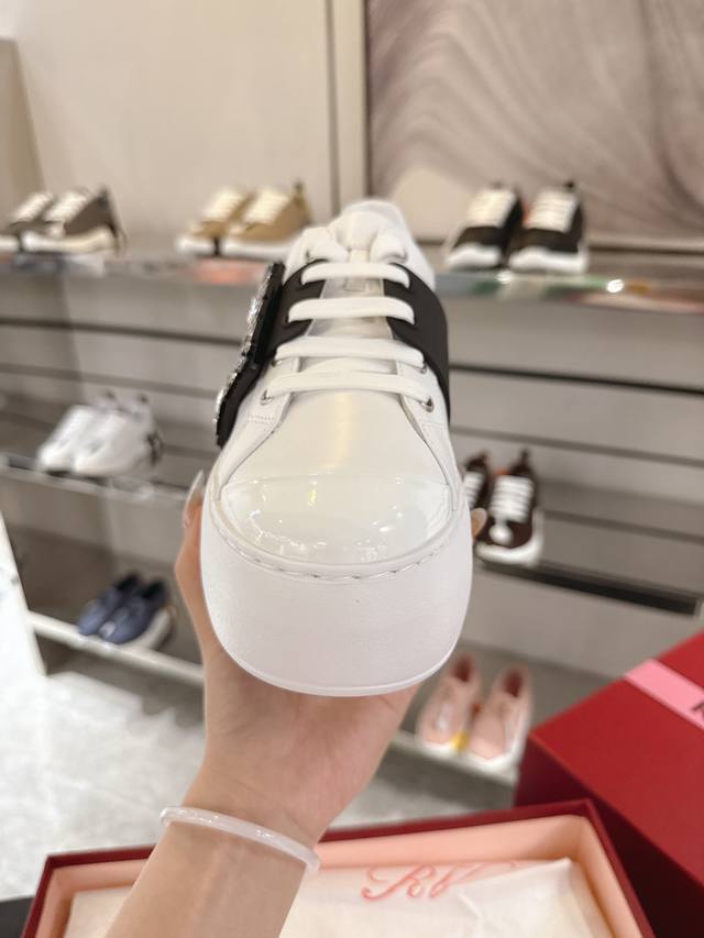 25春夏新款Roger Vivier罗杰仕水钻方扣漆皮拼接运动休闲鞋 新款一上市...
