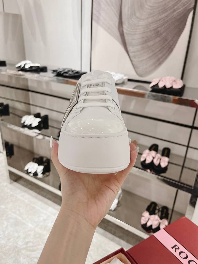 / Viv' Skate厚底运动鞋六月来袭。鞋底跟高猛增至8Cm,让各位秒变大长腿。鞋面全牛皮手工制作,搭配Viv经典扣饰,轻松应对各种场合。 纳帕小牛皮制成 漆皮