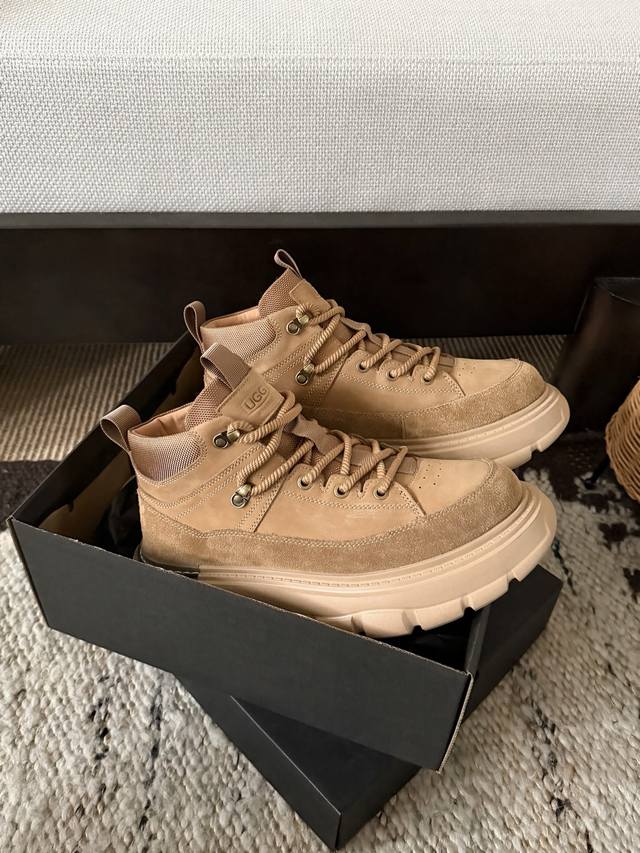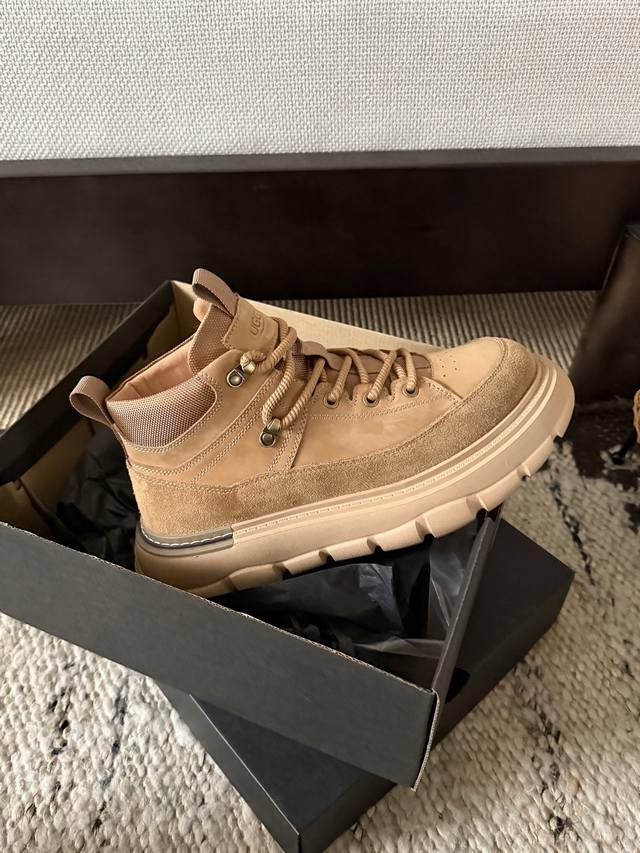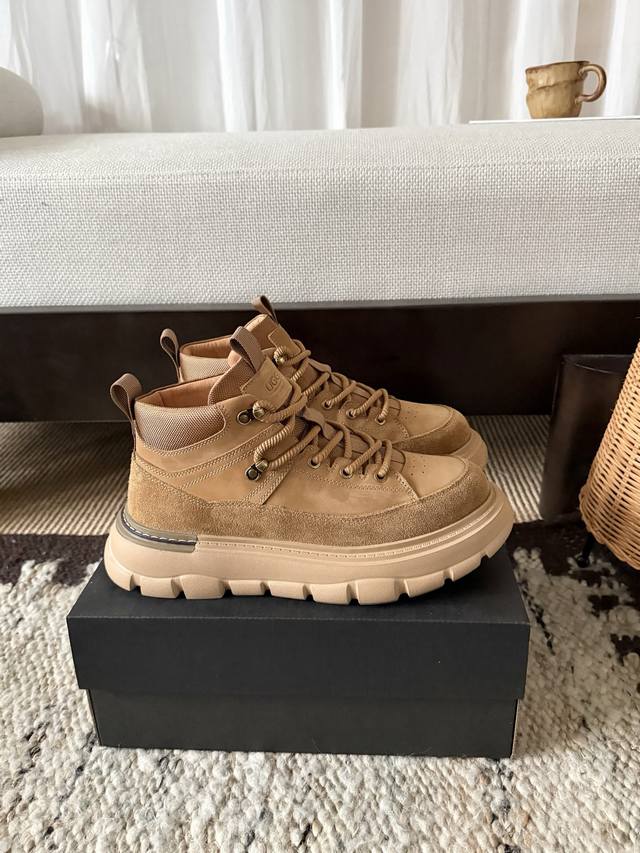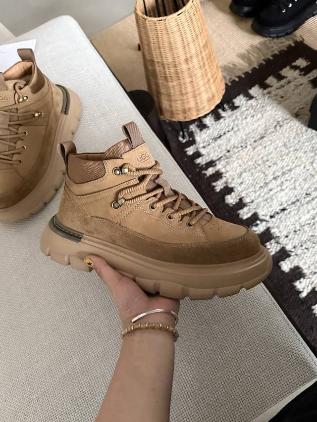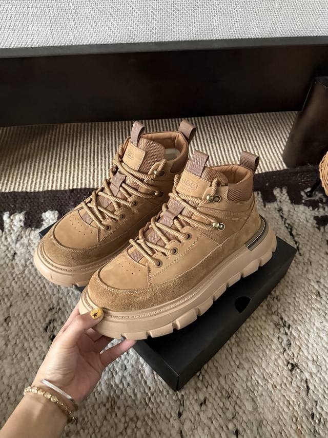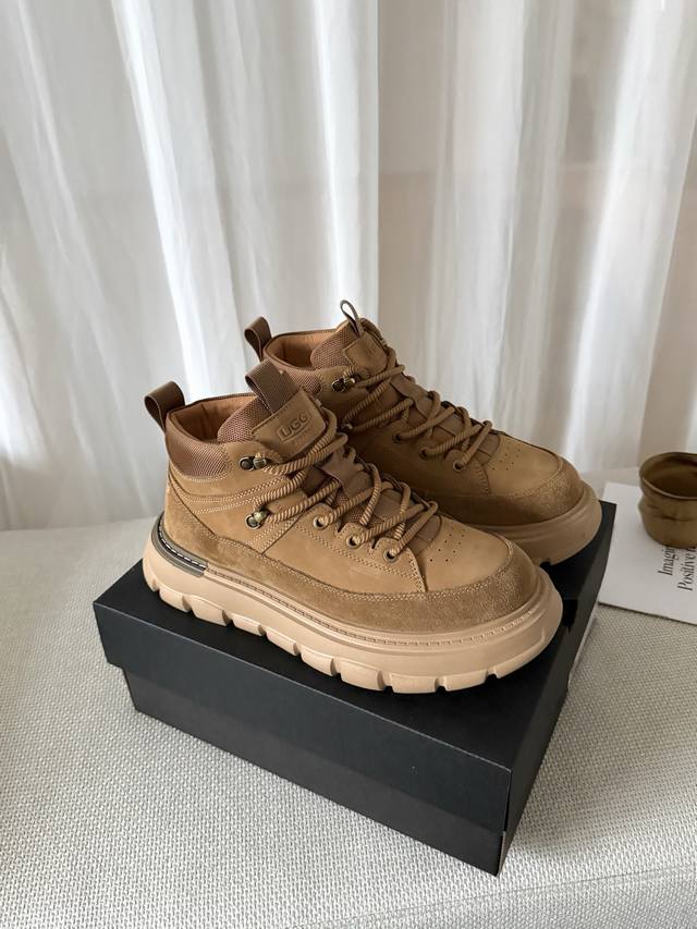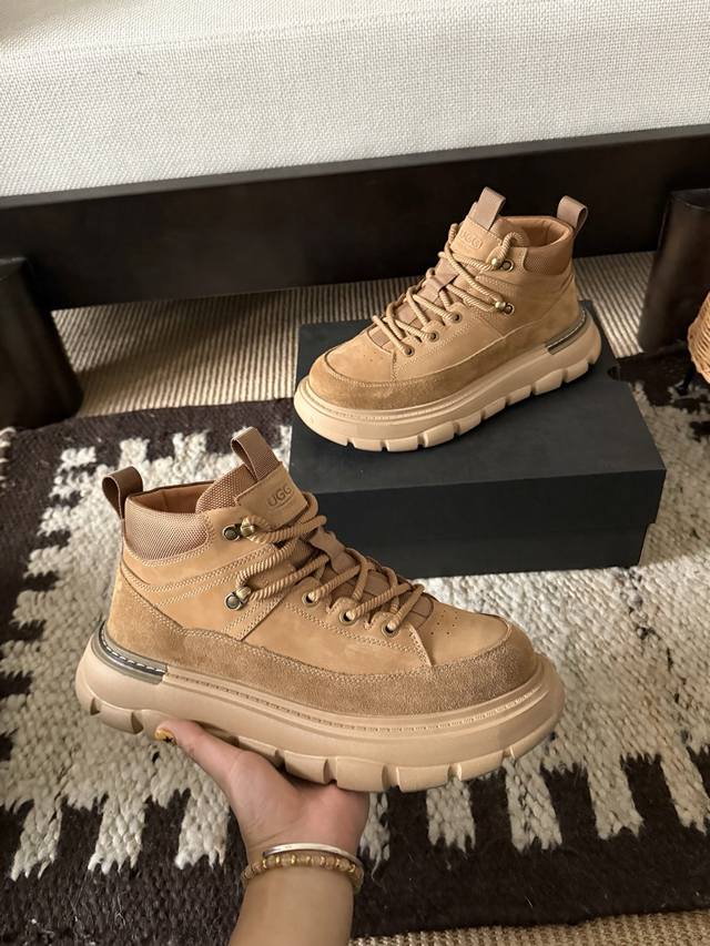 Xy-8025 锯齿工装男鞋 皮革拼接材质 很有设计感的鞋子 私模大底 隐形增高 上脚非常舒适 鞋面定制牛皮 内里真羊毛 超级适合秋冬 上脚百搭不臃肿 秋冬男神