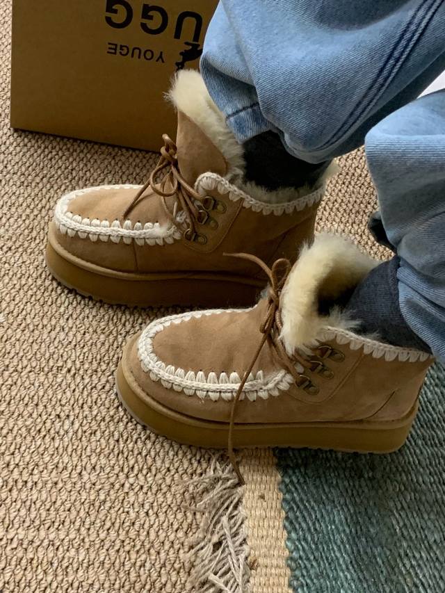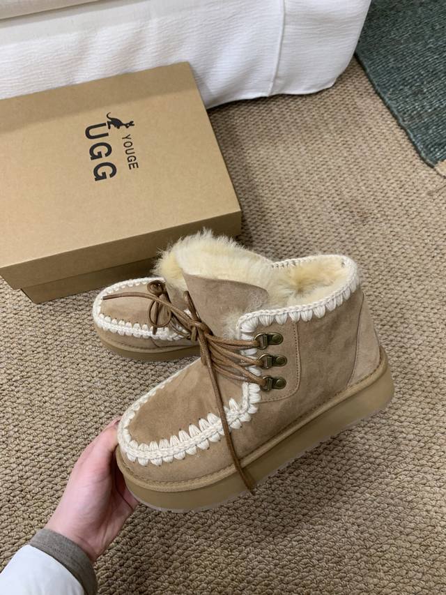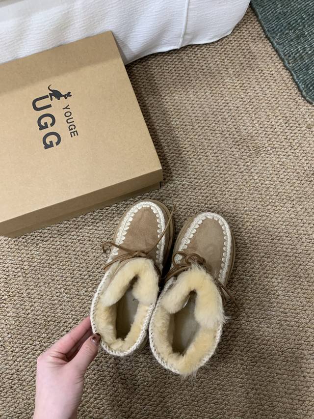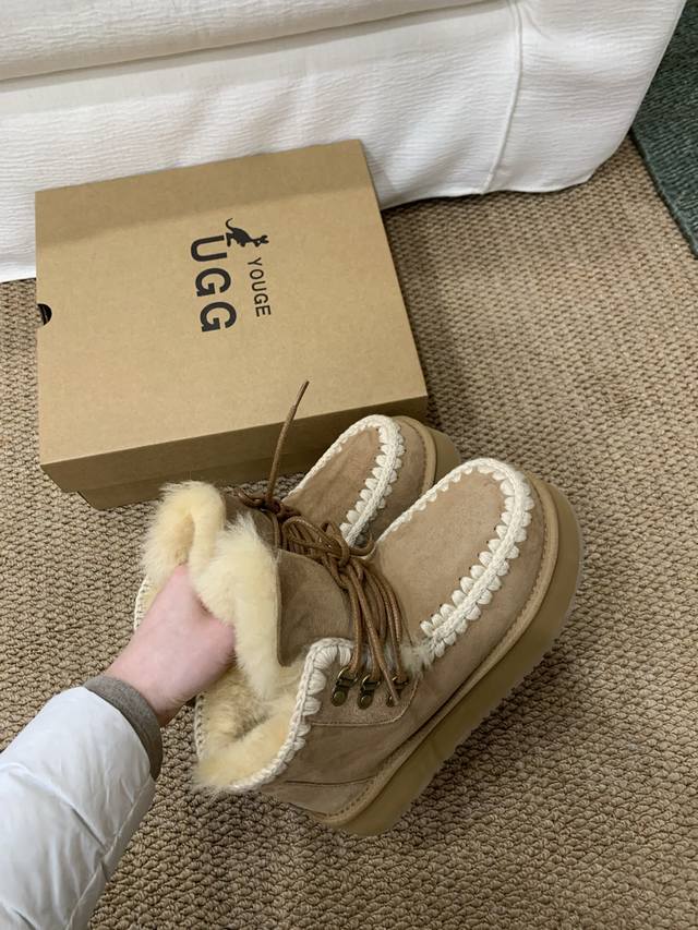 Youge Ugg 编织小马丁 纯手工编织 颜色 栗色. 采用隆丰一级皮毛一体 Size:35-40