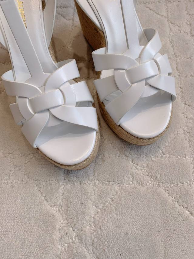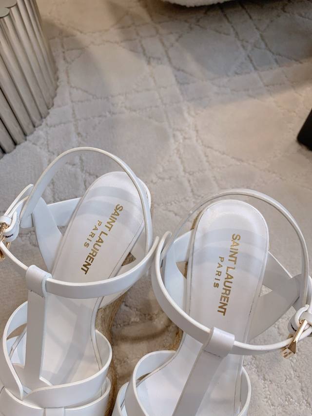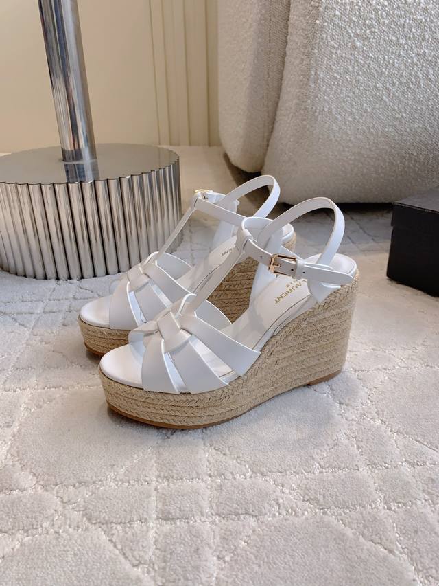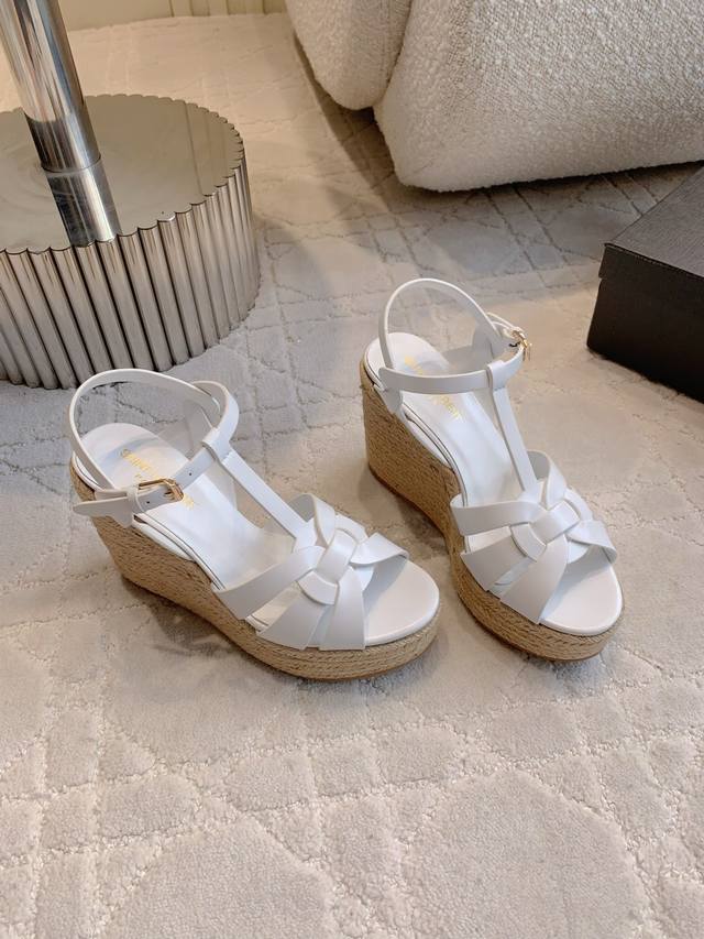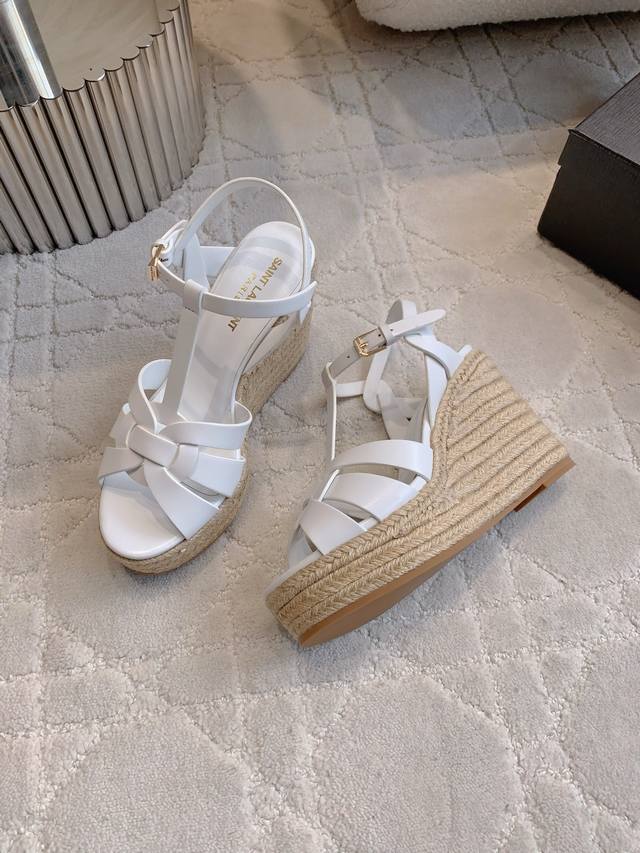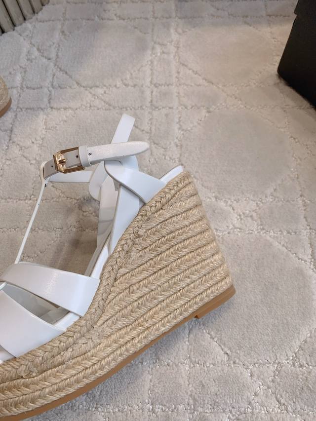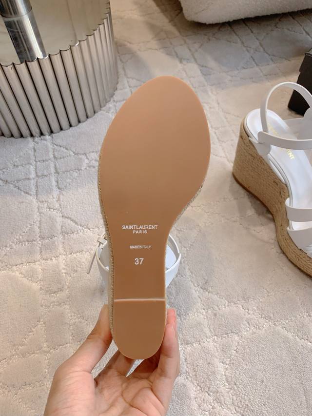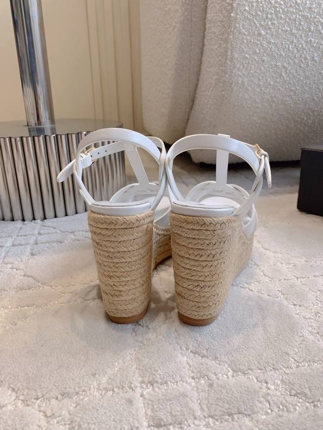 / Ys*杨树林 新款草编坡跟高跟凉鞋 简约大气 尽显极简高级感 脚感超级舒适 百搭经典款 上脚秒变大长腿 鞋面小牛皮 内里垫脚羊皮 原版开模大底 跟高11Cm 水