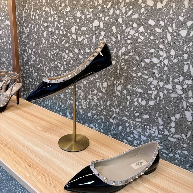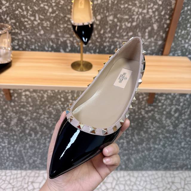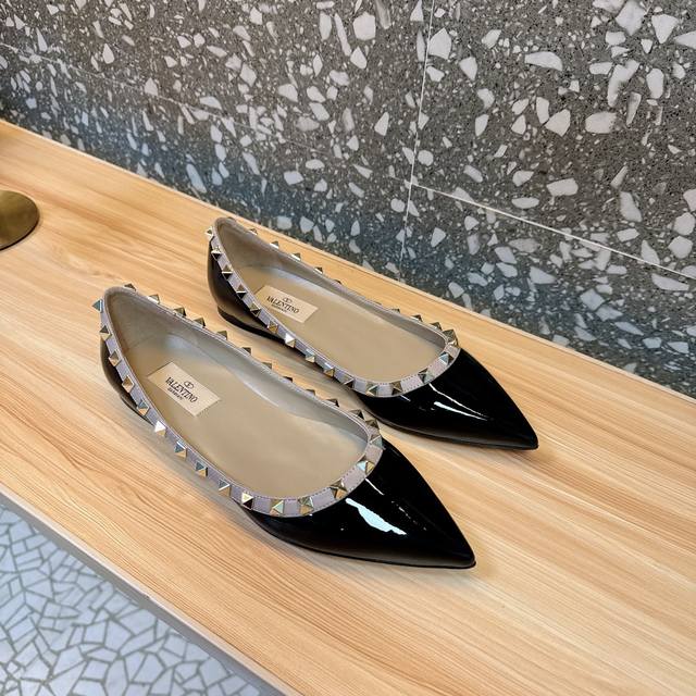 代购级别 Va*Le*Tino 华*天*经典铆钉漆皮尖头凉鞋单鞋系列 专柜一系列原版购入 顶级复刻 欢迎对比 档口有正品绝对最高品质,秒杀市场货 1原版开模独家
