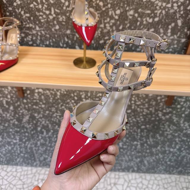 代购级别 Va*Le*Tino 华*天*经典铆钉漆皮尖头凉鞋单鞋系列 专柜一系列原版购入 顶级复刻 欢迎对比 档口有正品绝对最高品质,秒杀市场货 1原版开模独家