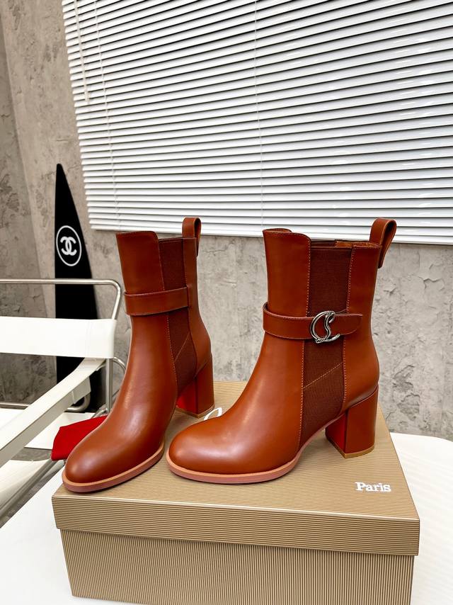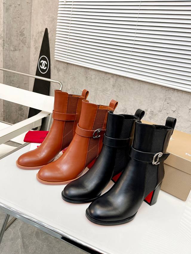 元: Christian Louboutin Cl 重磅推出新款粗跟厚底靴,采用亮泽小牛皮材质打造。侧面亮眼点缀 松紧 镀金 Christian Loubout
