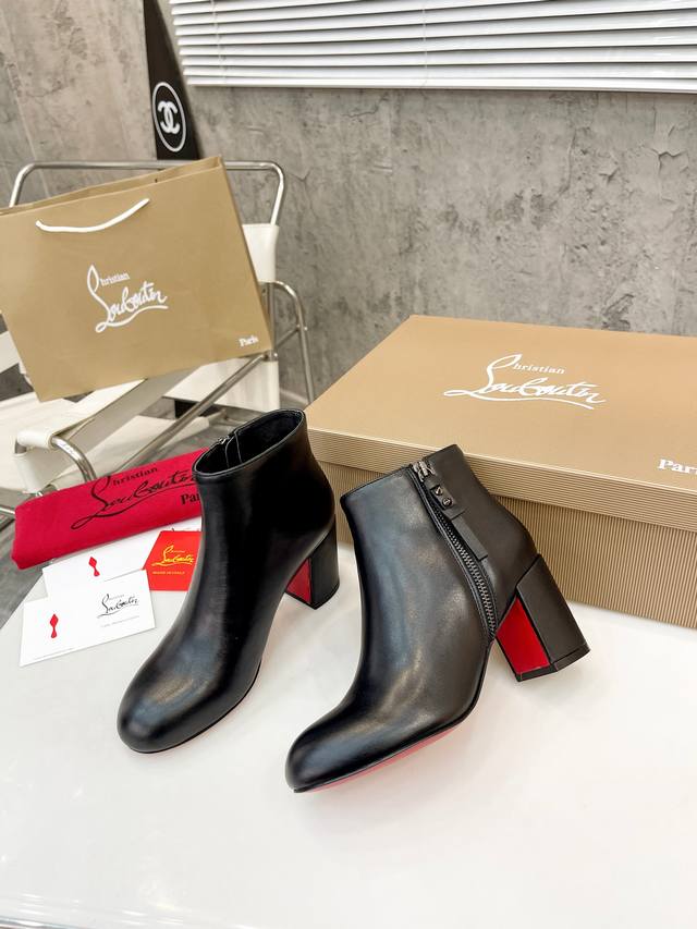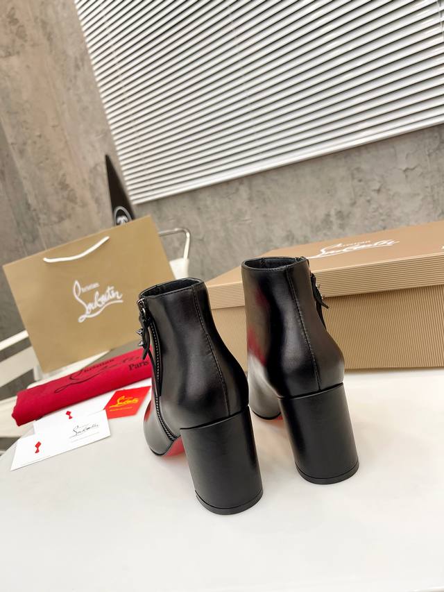 元: Christian Louboutin Cl 重磅推出新款粗跟厚底靴,采用亮泽小牛皮材质打造,简单 时尚 筒高4寸 12Cm 面料:粒面牛皮 内里:羊皮里