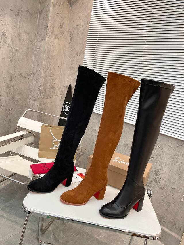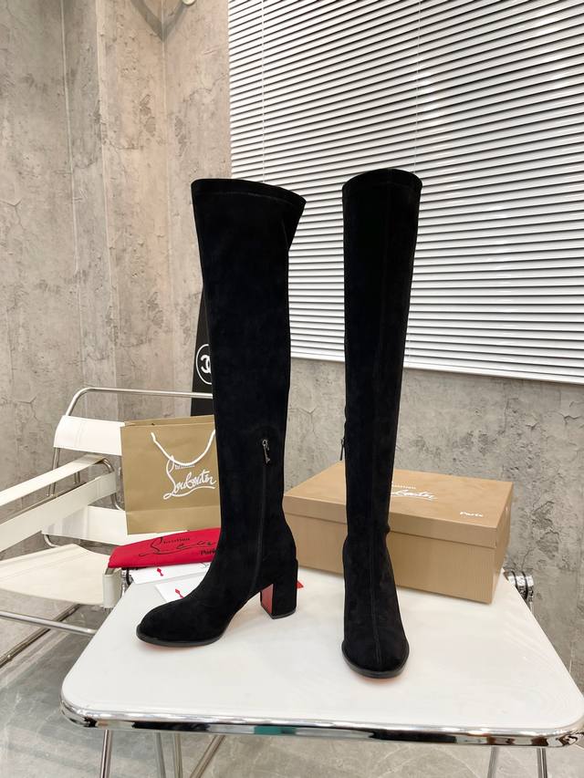 元1123号我: Christian Louboutin Cl 重磅推出新款粗跟弹力踝靴,经典而精致,线条流畅纤细。配有70毫米方形鞋跟。筒高22寸。 DDD 面料:弹力天鹅绒面 皮面 DDD 内里:羊皮里 DDD 大底 跟高:橡胶 跟高7Cm DDD 颜色:黑色弹力天鹅绒面 黑色弹力皮面 卡其弹力绒面 DDD 码数:34-41 34,41定制 DDD 包装:原板包装 DDD