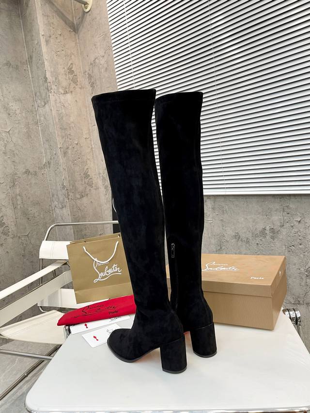 / 元1123号我: Christian Louboutin Cl 重磅推出新款粗跟弹力踝靴,经典而精致,线条流畅纤细。配有70毫米方形鞋跟。筒高22寸。 面料:弹