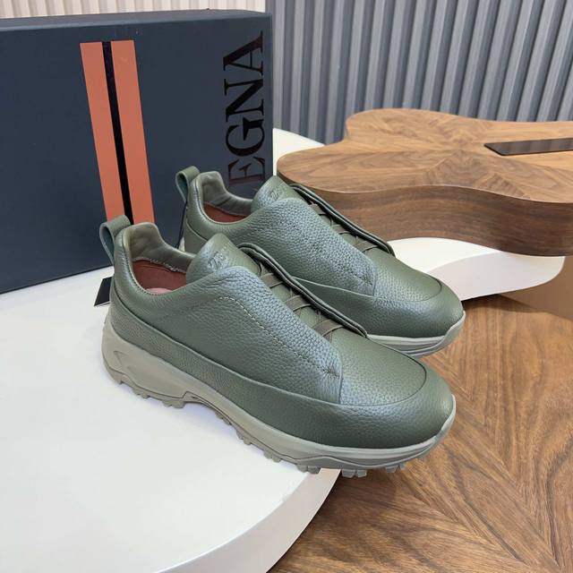 全新系列Zegna杰尼亚男鞋绒面革 Triple Stitchmonte奢华休闲鞋 最新走秀款官网同步 DDD product Informationmonte MóN Te 在意大利语中意为“高山”。其灵感源自杰尼亚绿洲中的林荫小径。Triple Stitcht Monte奢华休闲鞋以徒步旅行为目标,是全年之内任何时节外出旅行时的良伴。鞋履采用百搭的低帮款式,点缀灵感源自杰尼亚夹克手工缝线的三交叉细节,同时配备能够在户外活动时提供更大摩擦力的创新! DDD 杰尼亚著名精裁系列手工三重缝线设计,强大的抓地