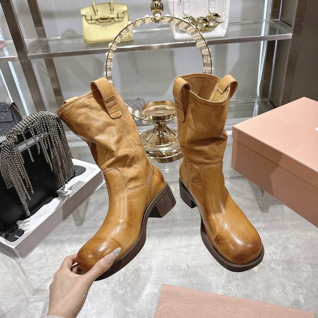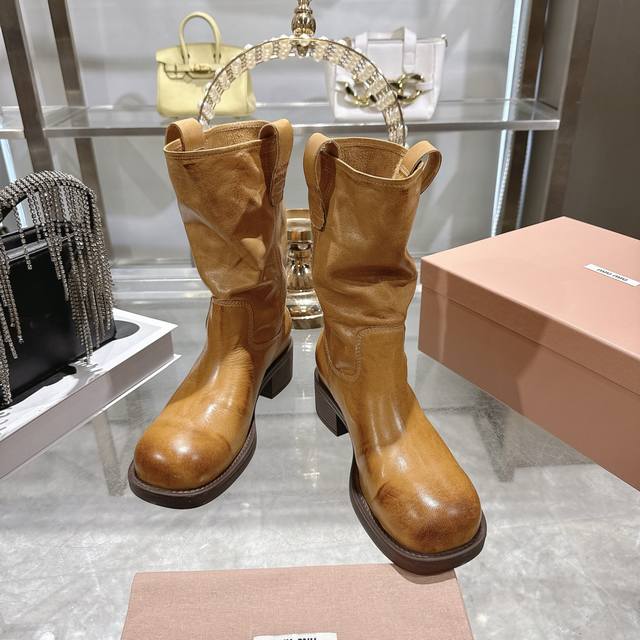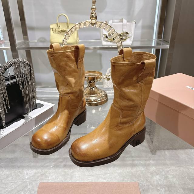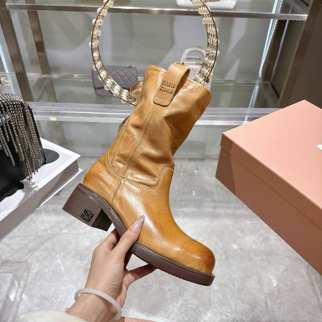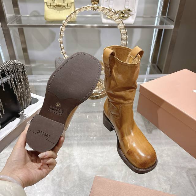 出厂价p 代购级Miu Miu 25 年双耳粗高跟套筒短靴 秋冬走秀新款短靴! DDD 今年最值得入手的靴子 没有之一!超多网红明星上脚 Miumiu今年秋冬确实泰酷辣 DDD 秋冬限定款 专柜非常难买 看着很硬的样子 其实非常软巨好穿!脚感超赞! DDD 靴筒宽大 不管腿粗腿细 都能穿出宽松感而且非常显腿直!!朋克风十足! DDD 面料:擦色小牛皮 内里:牛皮 大底:意大利真皮注塑底 DDD 码数:34-40 DDD
