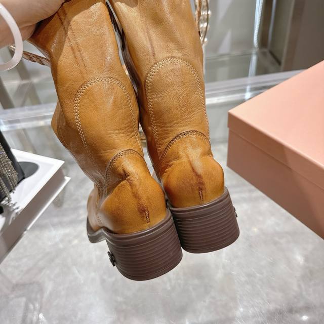 出厂价p 代购级Miu Miu 25 年双耳粗高跟套筒短靴 秋冬走秀新款短靴! 今年最值得入手的靴子 没有之一!超多网红明星上脚 Miumiu今年秋冬确实泰酷辣