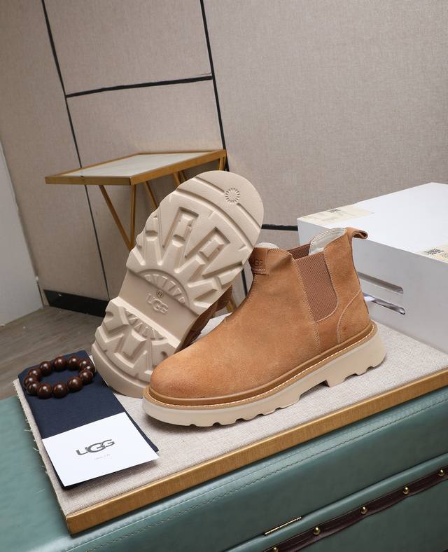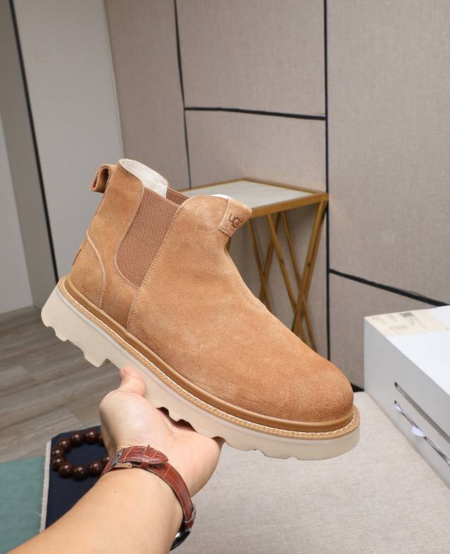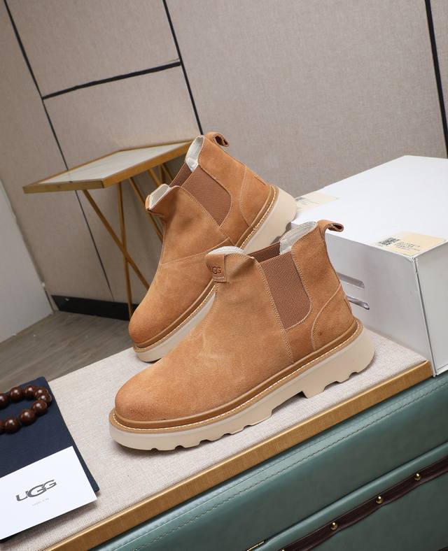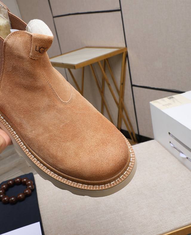 出厂价P 全真羊毛内里 假一赔十 请注意 原单品质 比较毛料的厚度爆款Ugg 来自澳洲温暖奢侈品牌男鞋,官网同步、贝克汉姆男款..,采用进口头层打蜡牛皮制作,鞋头打蜡 澳洲真羊毛绒里 精心缝制而成..进口橡胶马丁靴大底 舒适、柔软、耐磨 质量真心赞..做工精湛,一看就爱不释手,39-44码 45订做